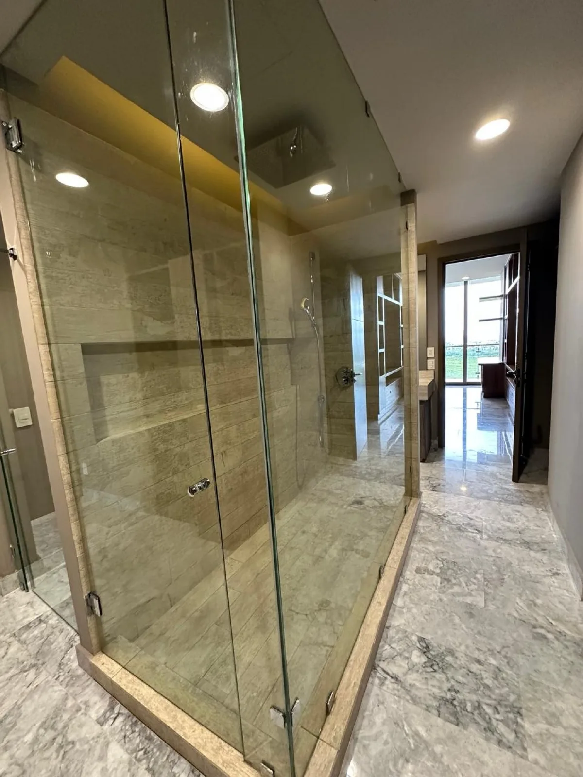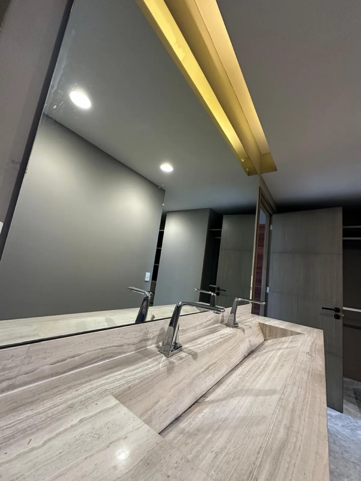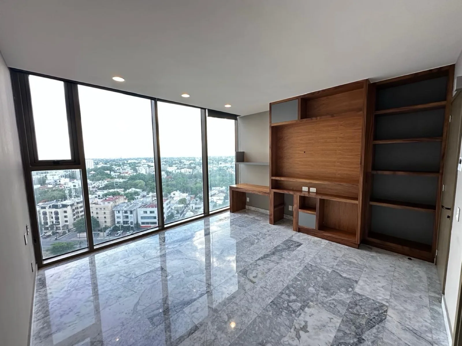 This apartment for sale is located in Puerto Cancún. It features three spacious bedrooms, plus an additional TV room that can function as a fourth bedroom. Each bedroom includes a full bathroom, and the primary suite has a walk-in closet.