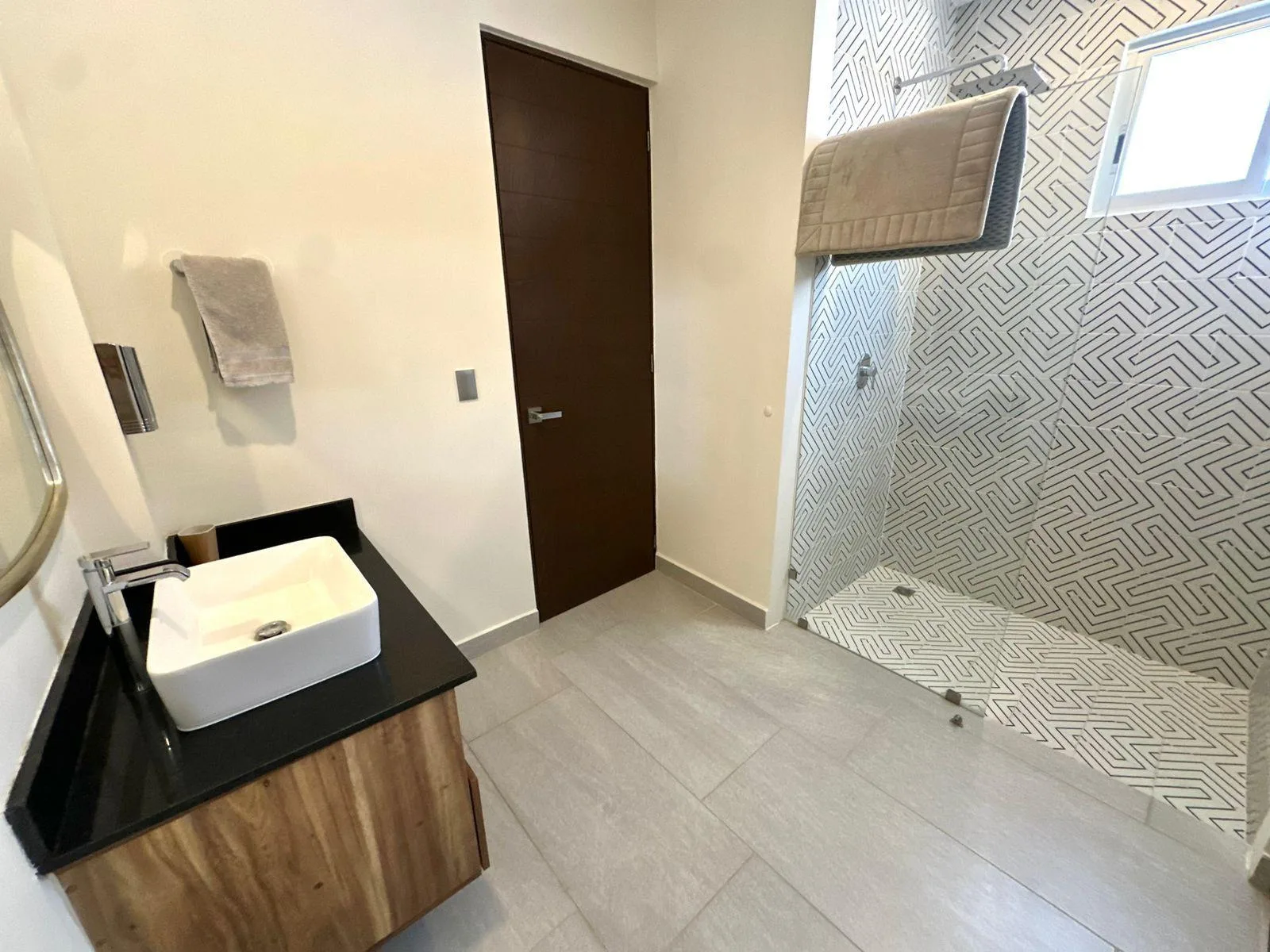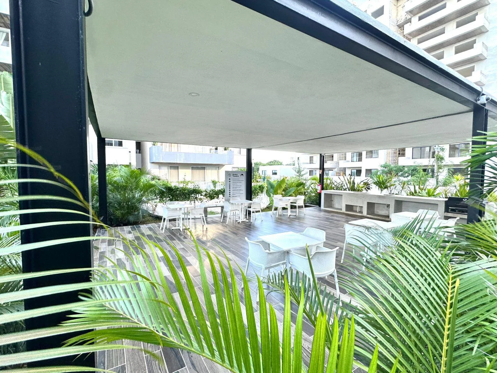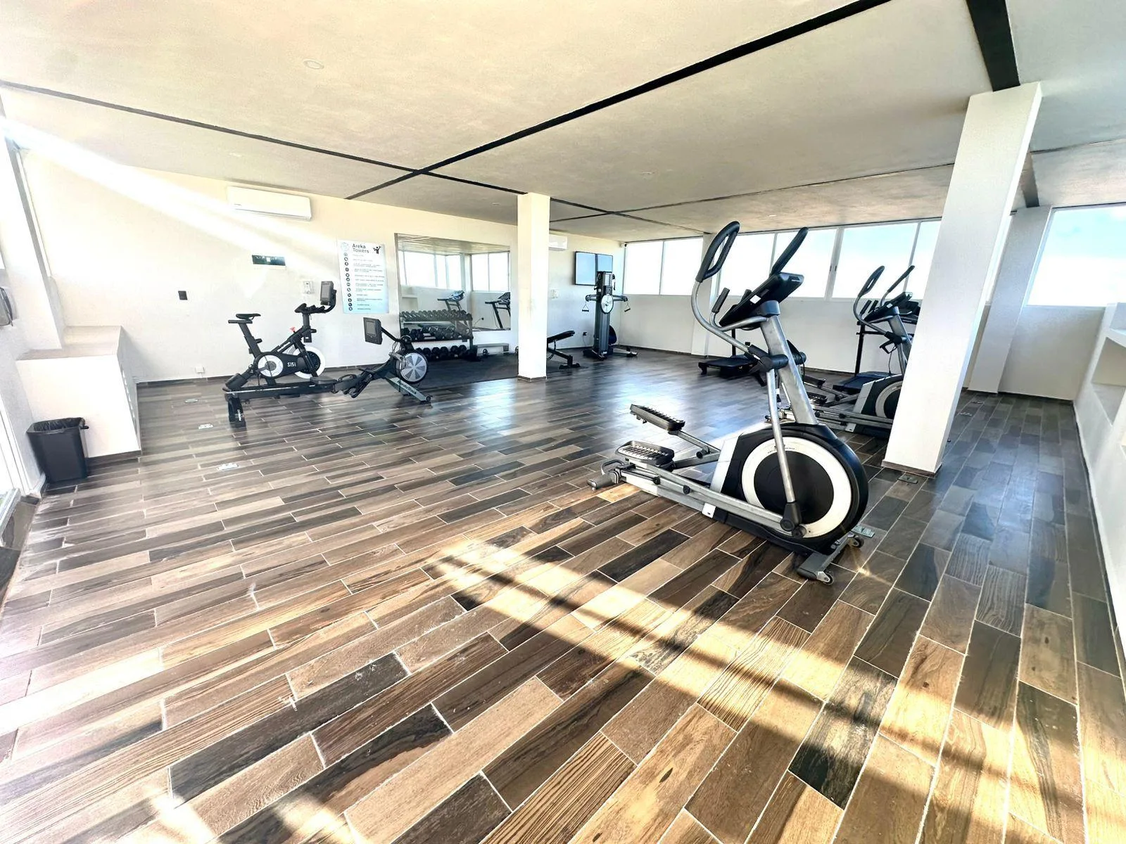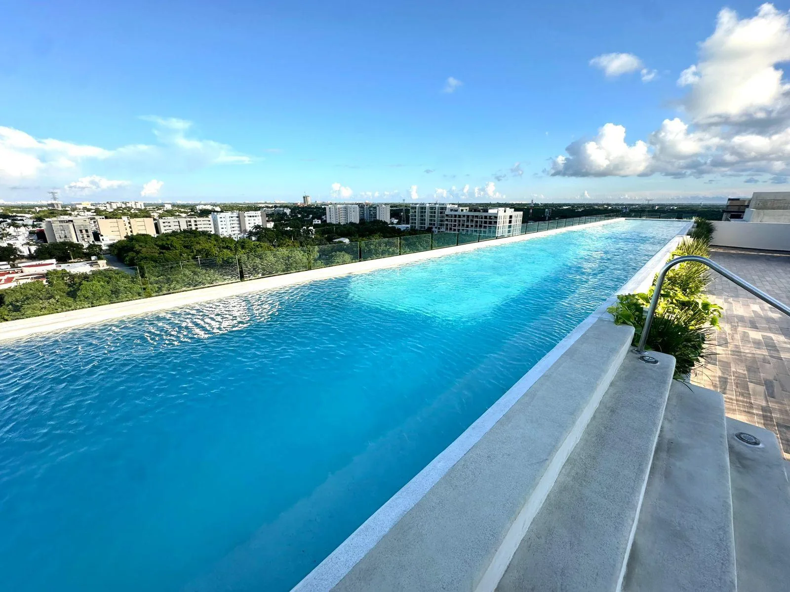 Rooftop amenities consist of a gym, bathrooms, showers, and a sauna. There is a semi-Olympic infinity pool and a grilling area with a pergola and barbecue.
