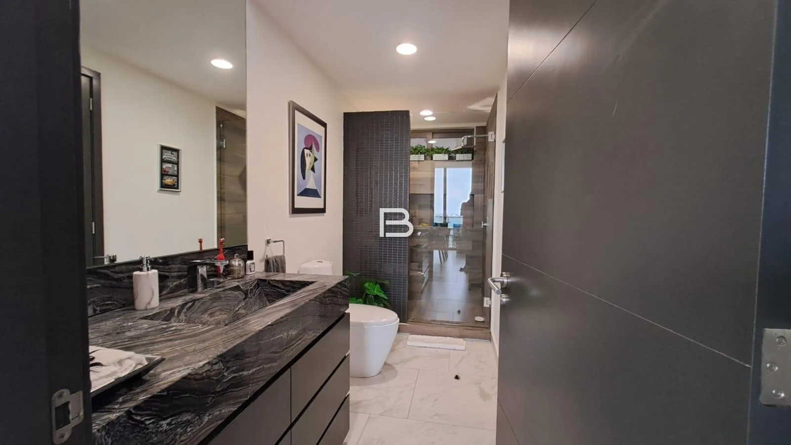 This spectacular apartment offers 213 square meters of spacious living area with a functional layout. It includes three bedrooms and three full bathrooms. The primary bedroom features a walk-in closet, a balcony, and a private bathroom. The secondary bedroom includes a walk-in closet and a full bathroom. The third room, suitable as a study or guest room, also includes a full bathroom. The residence integrates a fully equipped kitchen, a laundry room, a generous living and dining area, and an exterior terrace with impressive views of the Caribbean Sea and the golf course. The unit is located in Tower C, one of the towers within the complex noted for its favorable orientation and privacy.