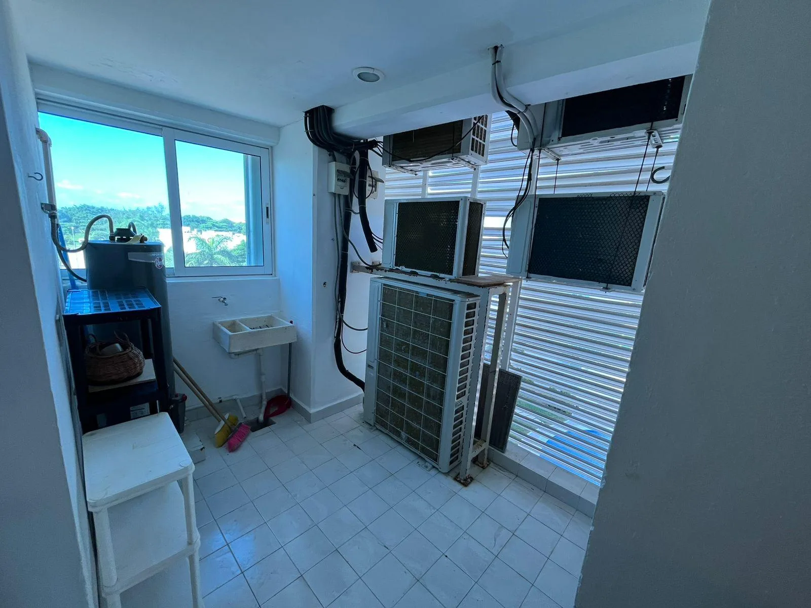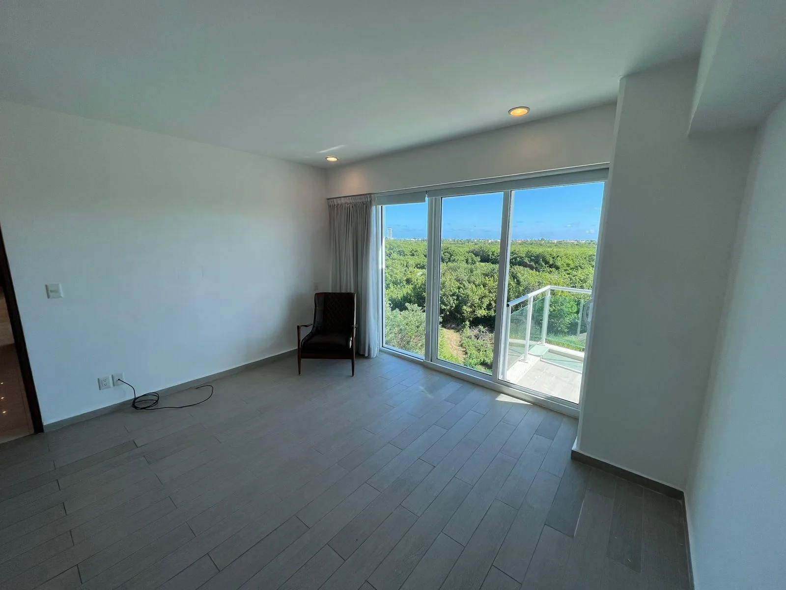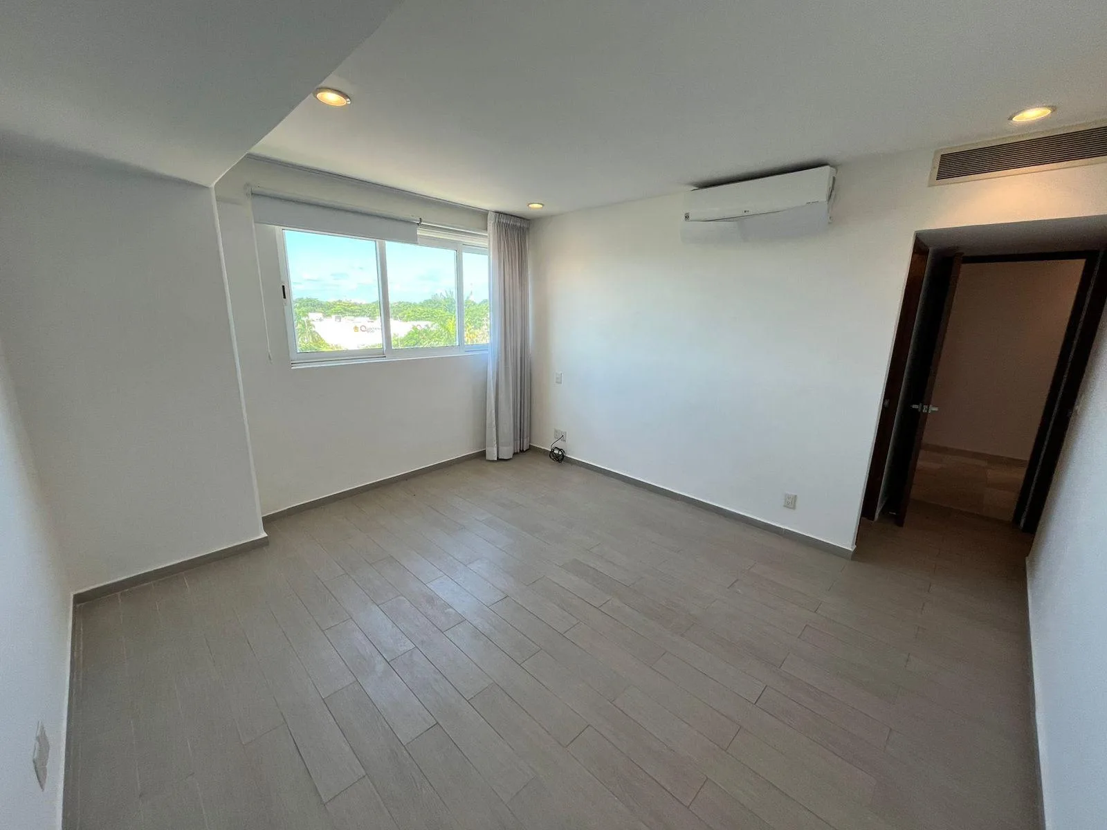 The apartment features two terraces providing panoramic views. It includes two dedicated parking spaces and is equipped with hurricane-resistant curtains and installed air conditioning units.