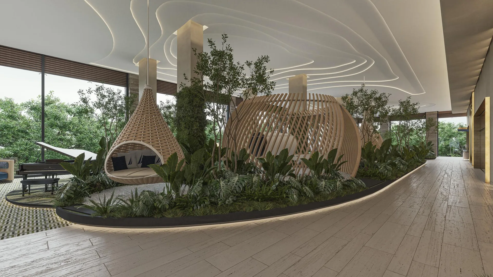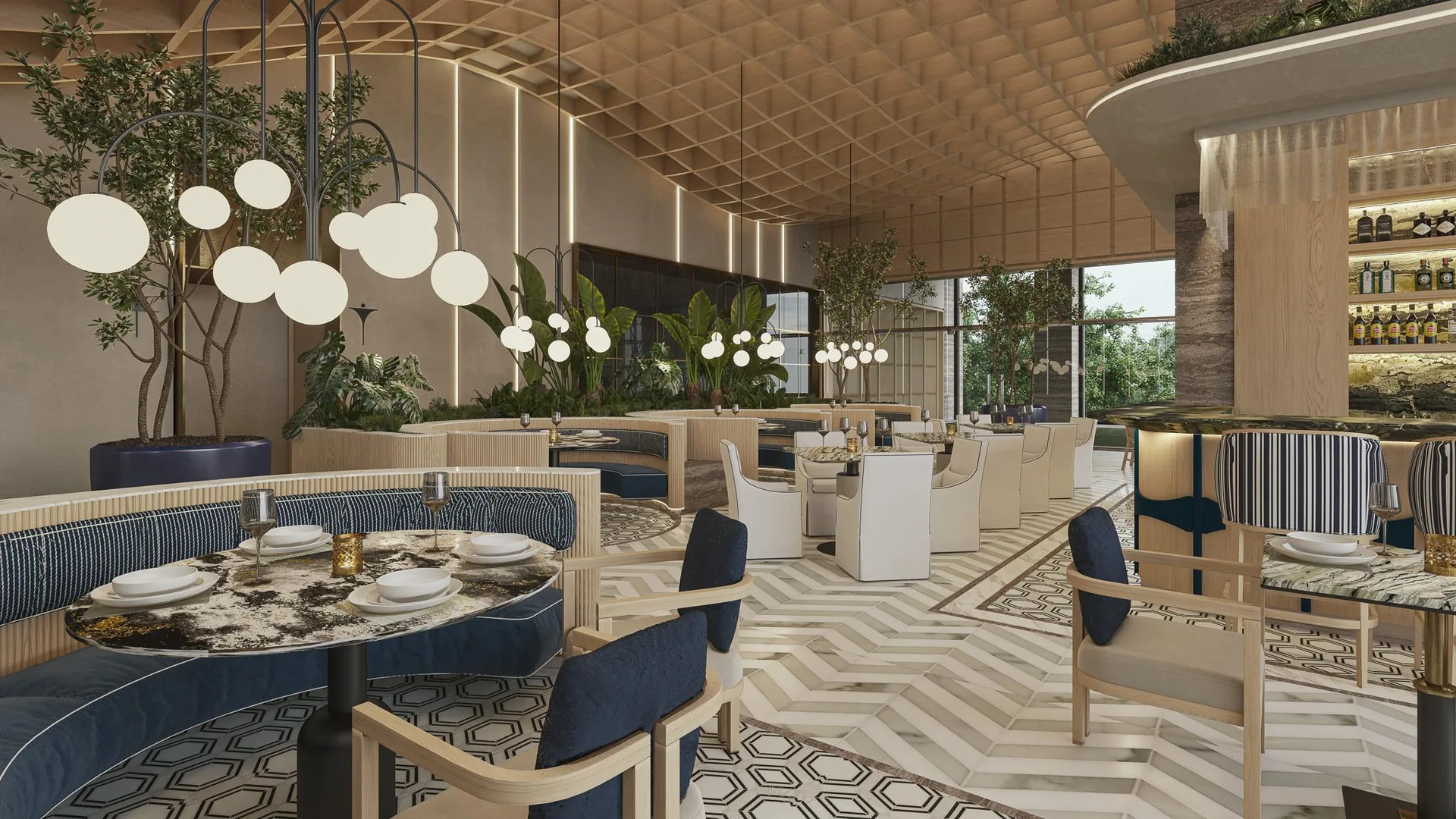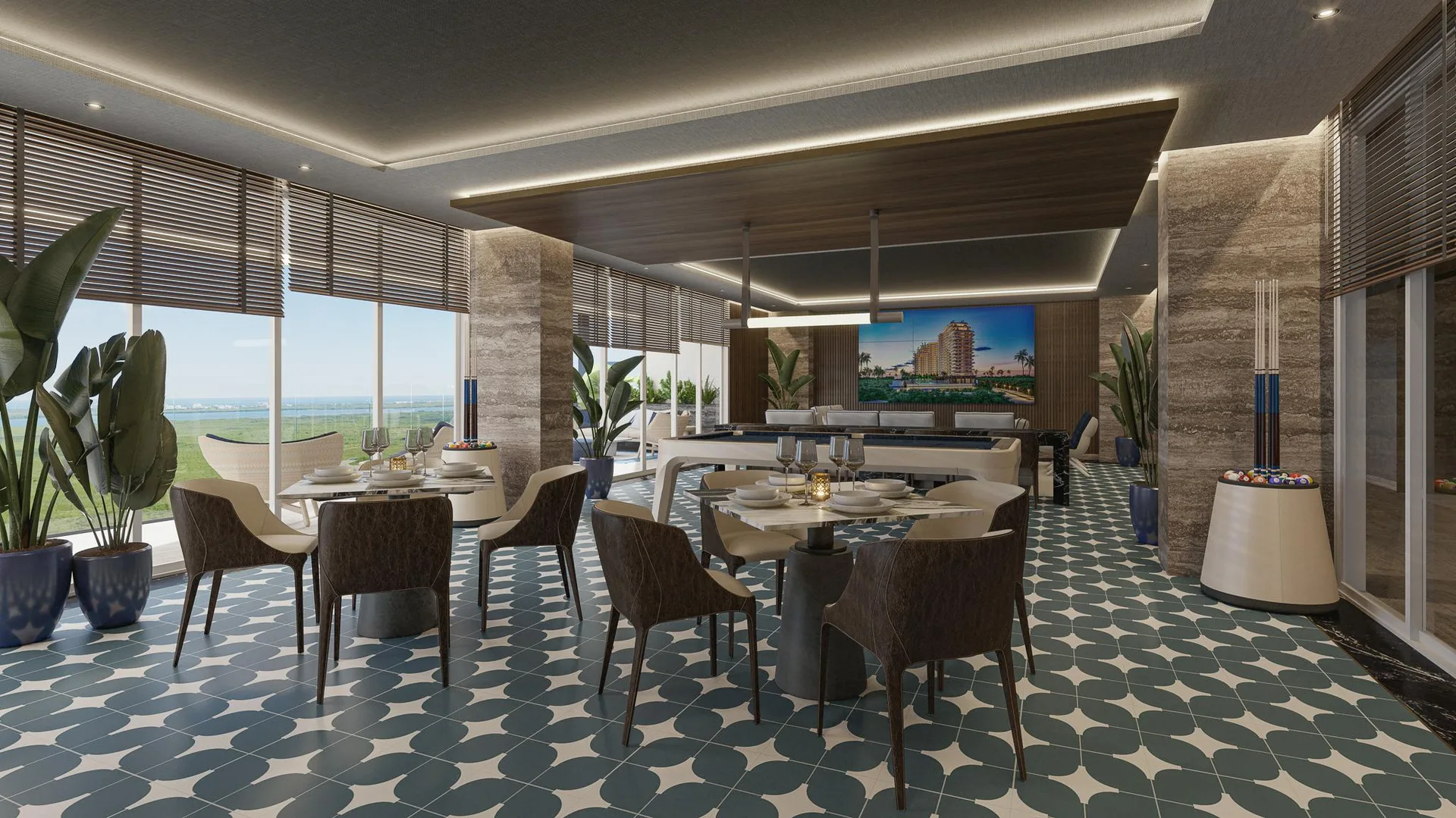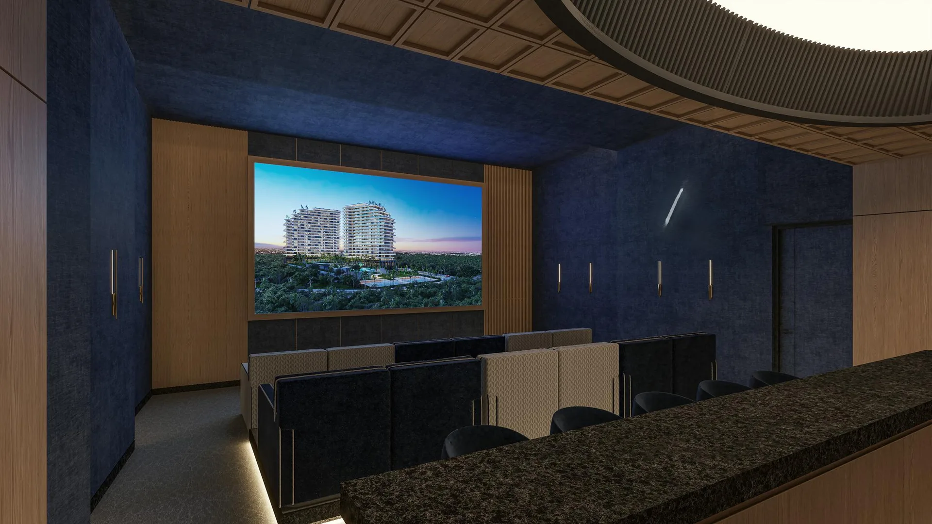 Beyond the residence unfolds a universe of over fifty amenities that redefine community living. These include multiple swimming pools, featuring a rooftop infinity pool with a bar, an exclusive spa, and a fitness center. For entertainment, there is a private cinema, tennis and paddle courts, a game room, and specialized areas for children and teenagers. The experience culminates with privileged access to an exclusive Beach Club on Isla Blanca, with private transportation included.
