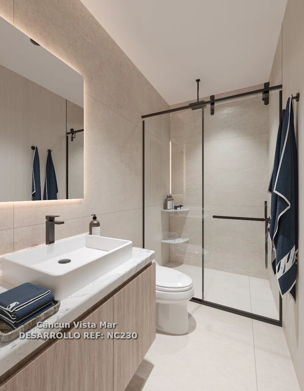 The surrounding development features two modern towers within a serene natural setting near the Nichupté Lagoon. It offers connectivity to downtown Cancun, the airport, and the Hotel Zone.