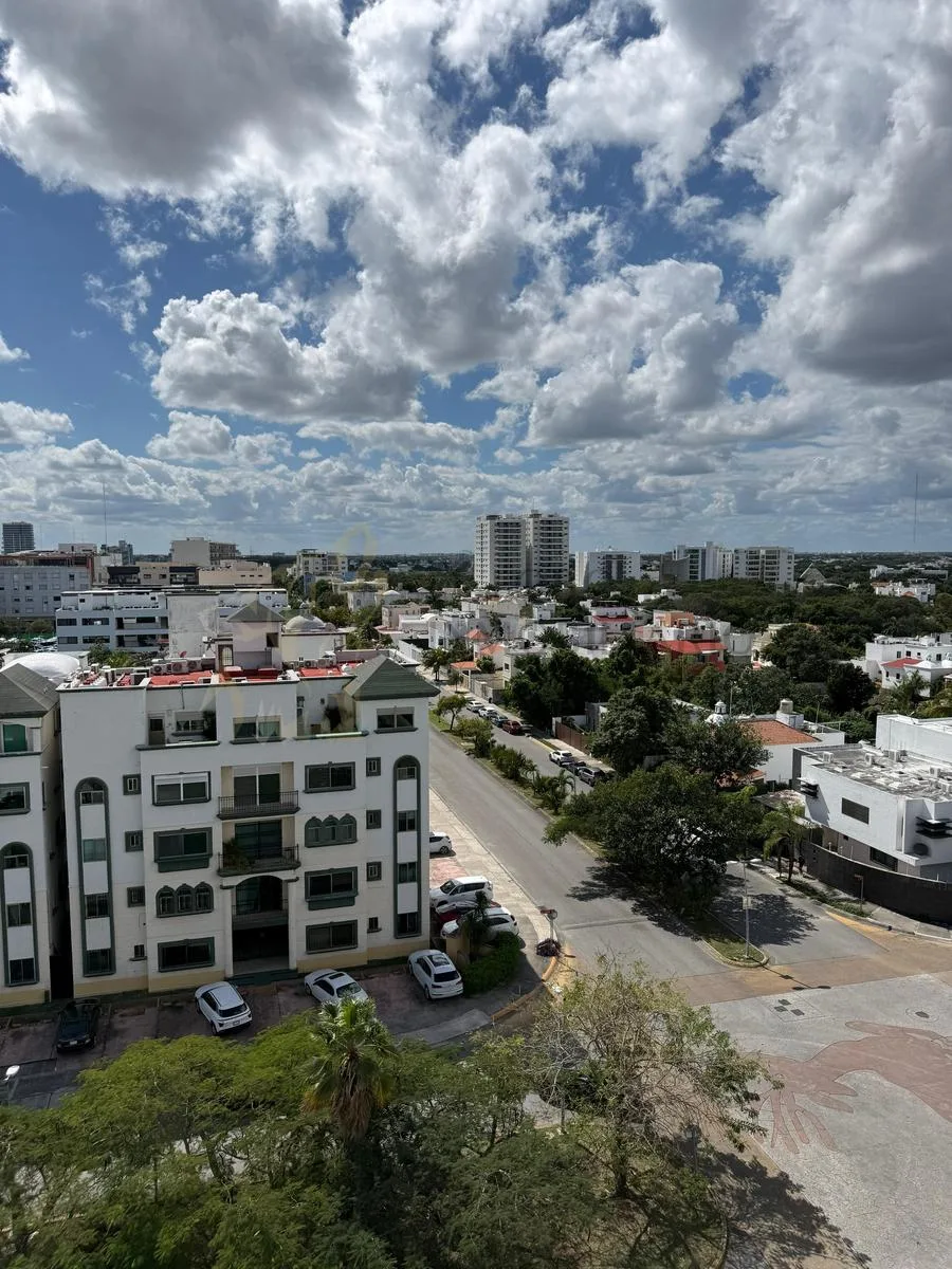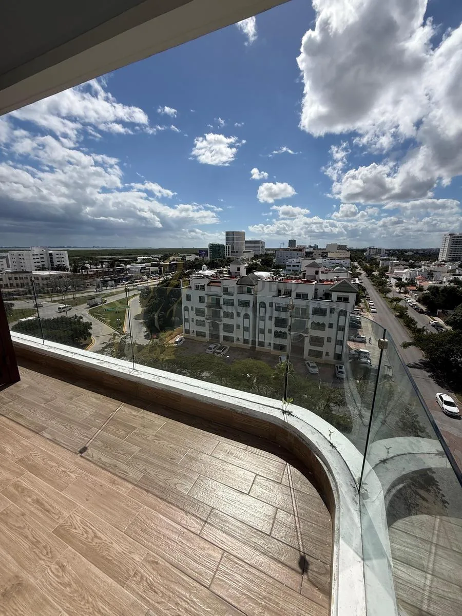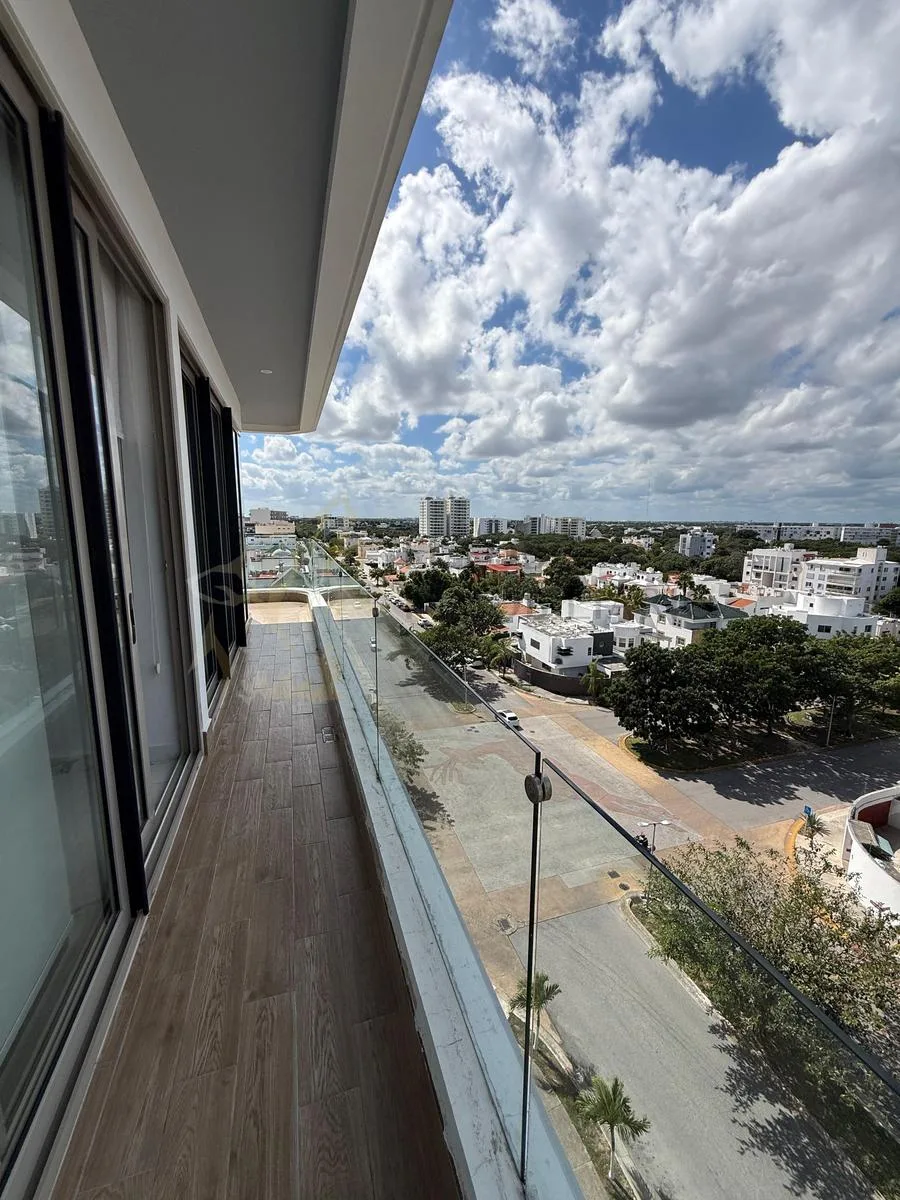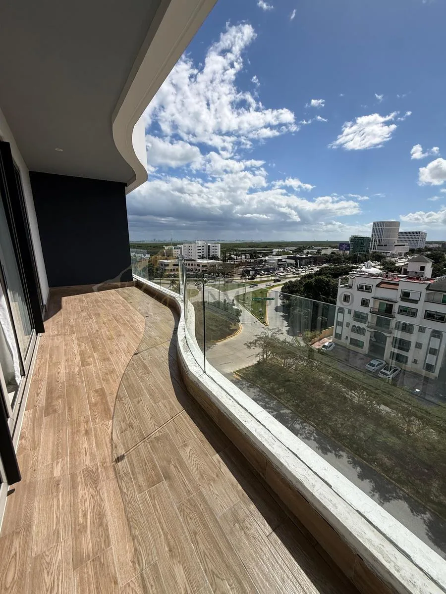 The apartment has a construction area of 184 square meters. It includes two and a half bathrooms, air conditioning, a laundry area, and a large terrace with direct views of the Hotel Zone. Two covered parking spaces are provided.