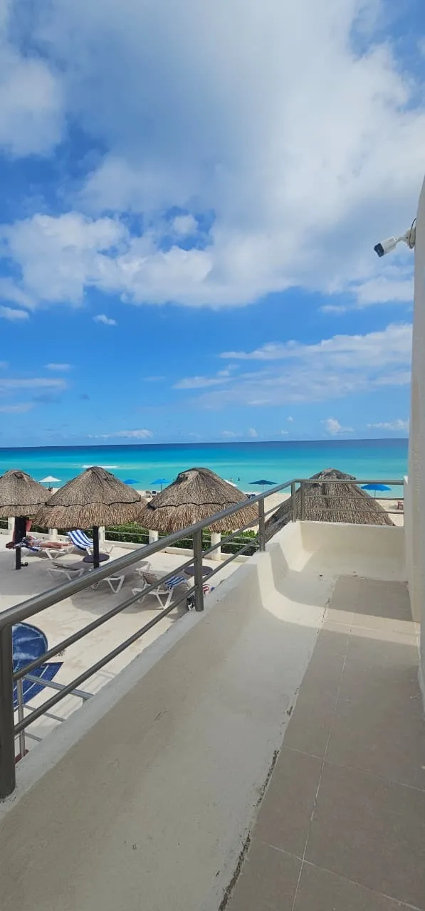 Views of the Caribbean Sea are accessible from the property, which is located near a beach in Cancun featuring white sand and turquoise waters.