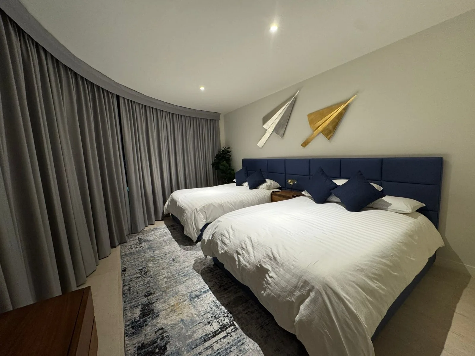 Building amenities comprise a spa, fitness gym, infinity pool, kids workshop, pool lounge, and a padel court.