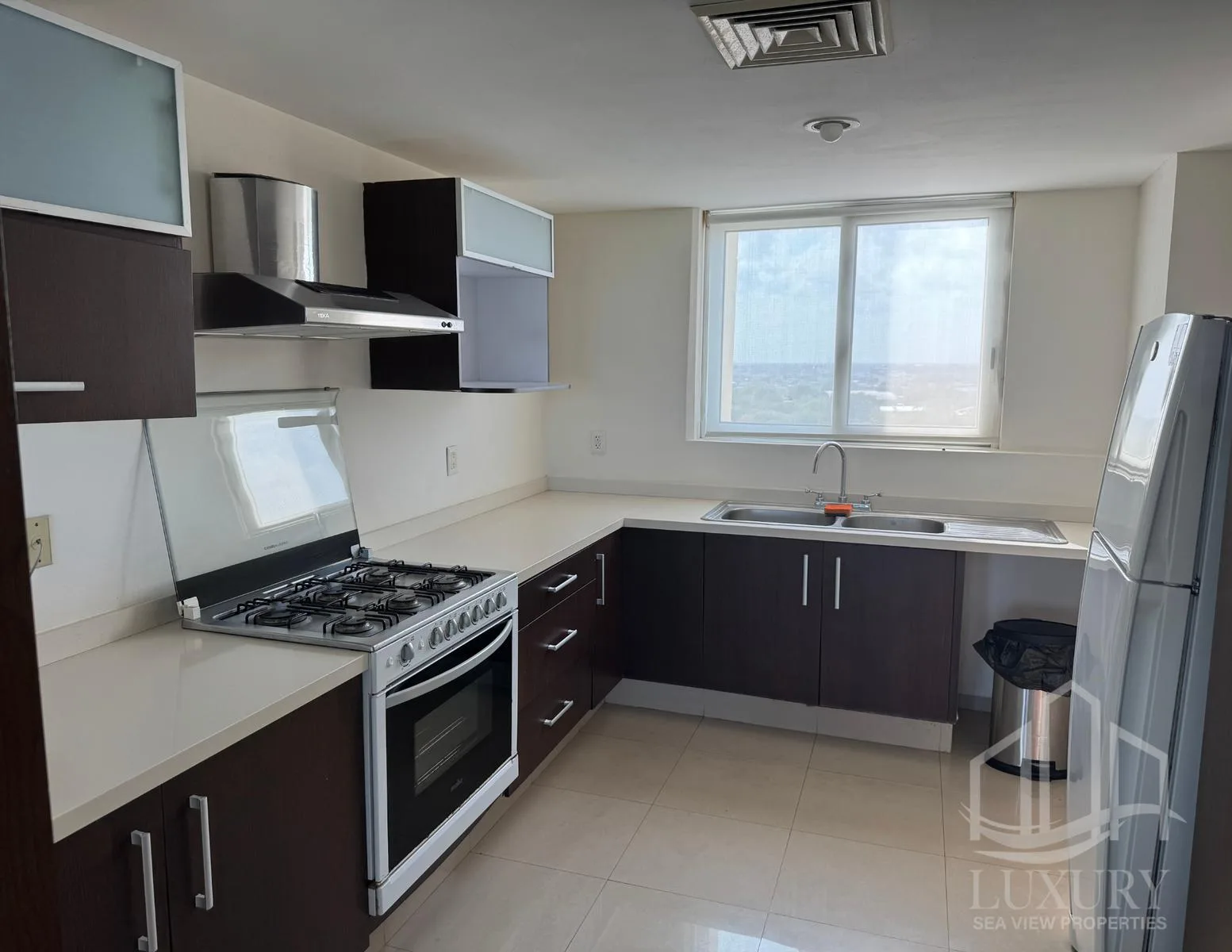 This furnished apartment is located on the 10th floor of the Residencial Isola Puerto Cancun complex. The unit offers beautiful views of the golf course and the Caribbean Sea.