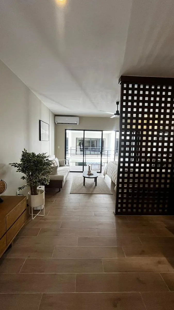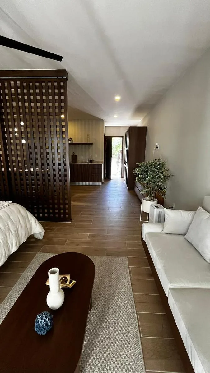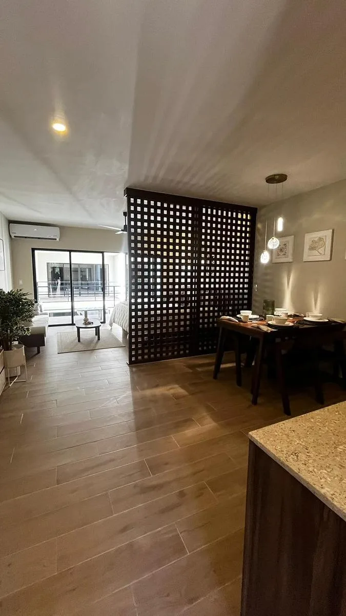 This property is an exclusive 50 m² apartment available for immediate occupancy. It is located in Tulum's Region 15, an area known for its development and value appreciation. The location is privileged, approximately eight minutes from the beach and surrounded by nature, connectivity, and services.