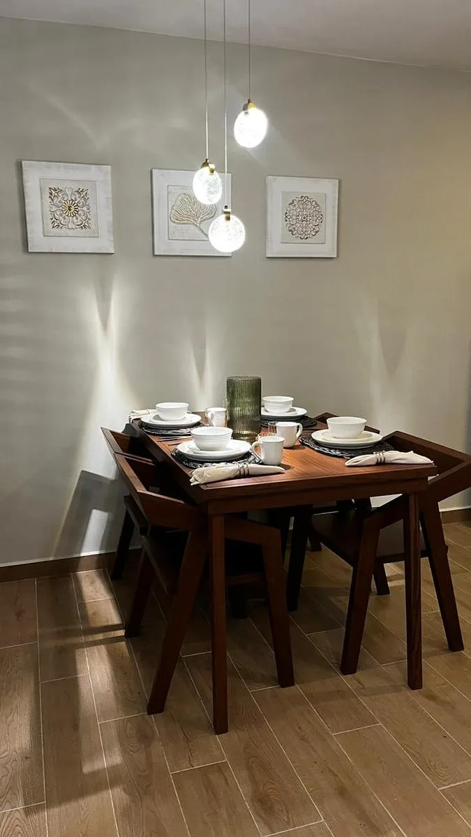 The apartment features 50 square meters of intelligently distributed space. The layout includes a combined living and dining room, a fully equipped kitchen, a comfortable rest area, and a full bathroom. It features a spacious terrace with a direct view of the swimming pool. The finishes are inspired by contemporary Asian design.