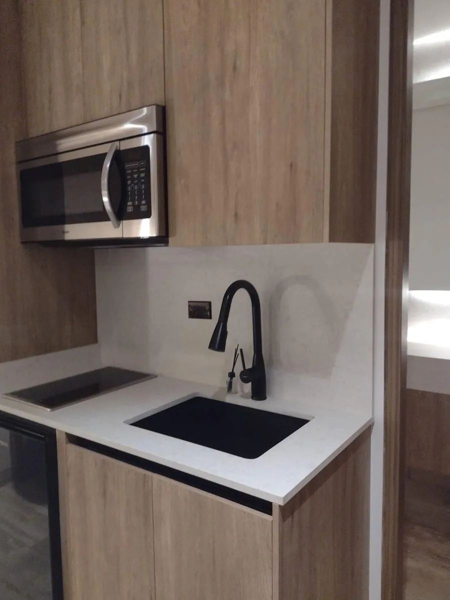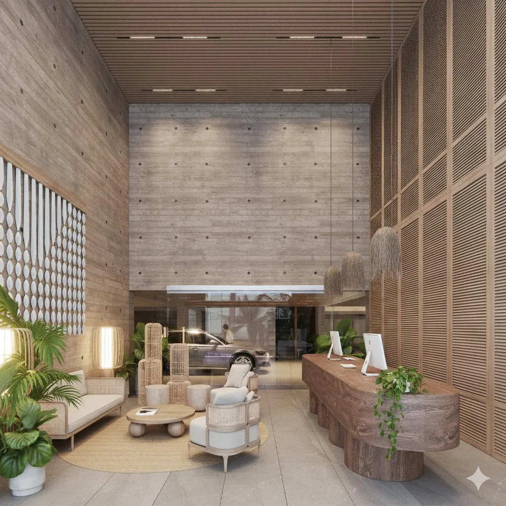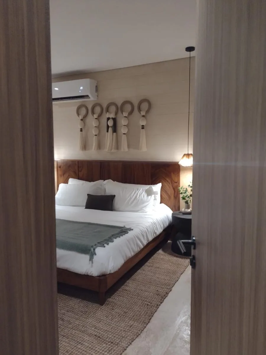 Designed under an "Organic Luxury" concept, the generous private terrace creates a personal viewpoint for contemplating Cancún's spectacular sunsets, integrating indoor warmth with the freshness of the Caribbean environment.