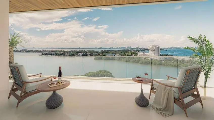 The available residences reflect a timeless design focused on comfort. The 2-bedroom apartment features open spaces with fluid transitions, a designer kitchen with finishes in natural materials, a primary bedroom with panoramic views and an en-suite bathroom, and a private terrace. The 3-bedroom apartment offers expansive social areas, three bedrooms with premium finishes and walk-in closets, and seamless integration between interiors and outdoor terraces. Both unit types offer views of either the Caribbean Sea or the Nichupté Lagoon.