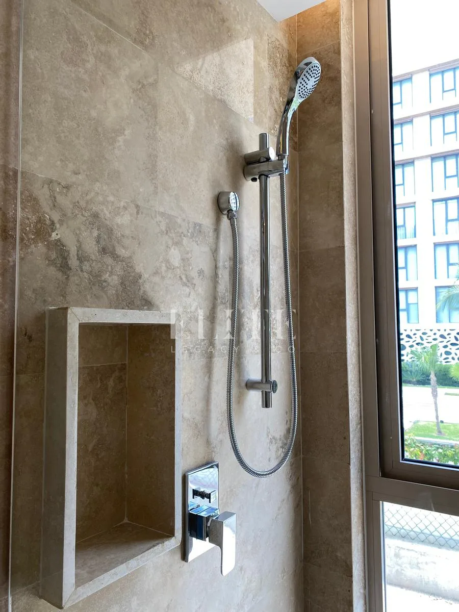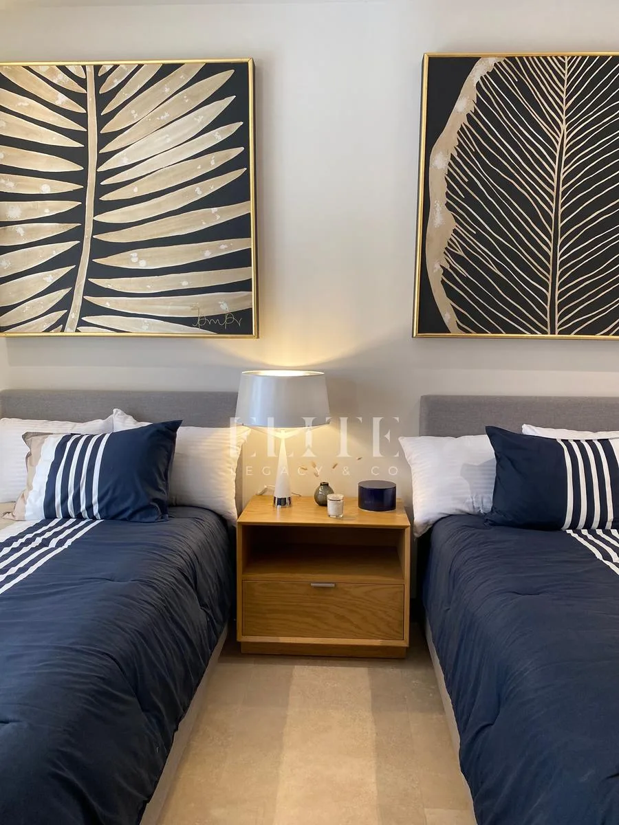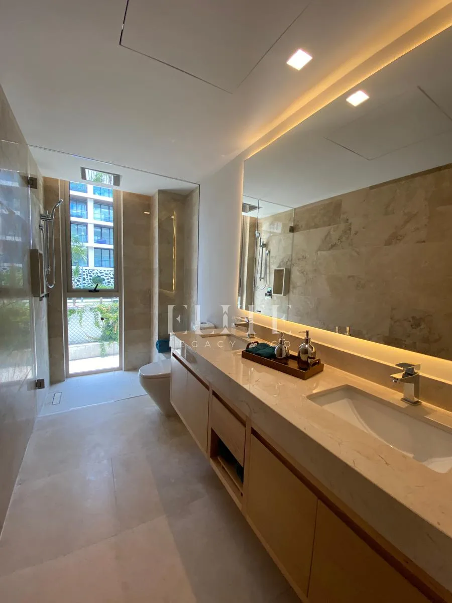 The building's amenities are exceptional, featuring an elegant lobby, a fully equipped gym, a swimming pool, a business center, an entertainment room, a marina, a beach club, and 24-hour security. The building is equipped with an elevator and provides two assigned parking spaces per apartment.