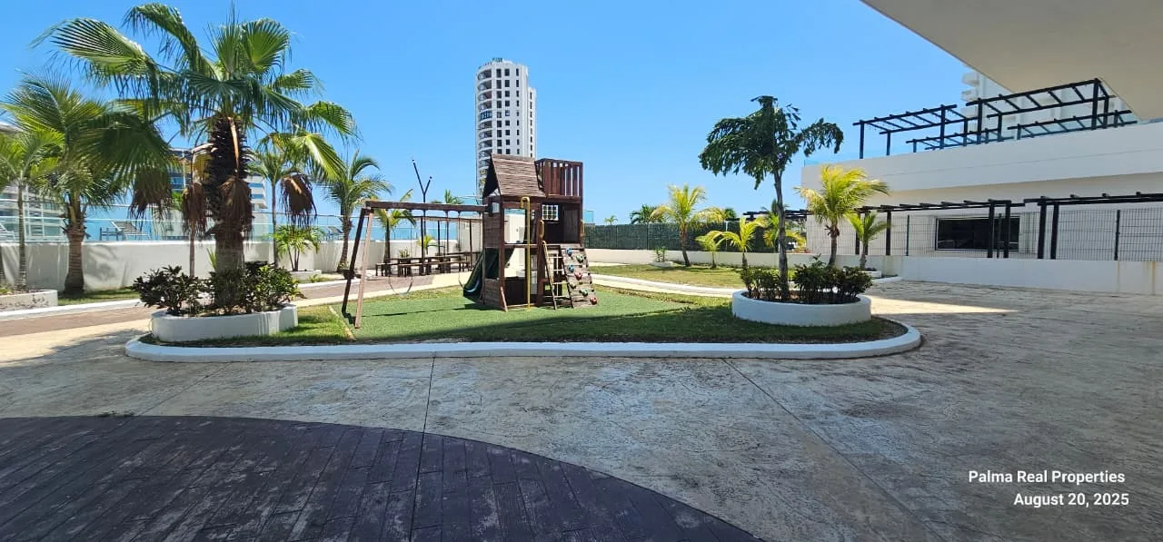 The building offers a pool with a lounge area, a fully equipped gym, and 24/7 security. Additional features include covered parking and dedicated green and recreational spaces. The unit is located on the second floor.