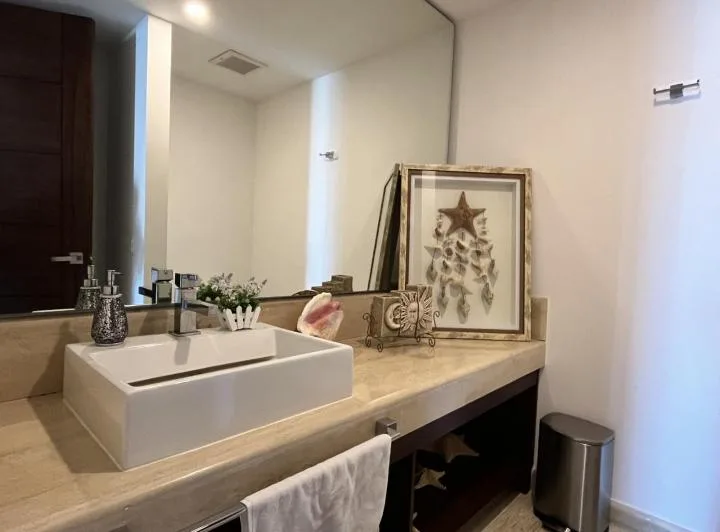 This exclusive, furnished and equipped apartment features three bedrooms and 4. 5 bathrooms. It is located in Marina Condos, one of the most sought-after buildings in Cancun. The residence offers a beautiful frontal view of the Caribbean Sea and the Puerto Cancun marina, just steps from the Puerto Cancun shopping center. Short-term vacation rentals are permitted within the building.