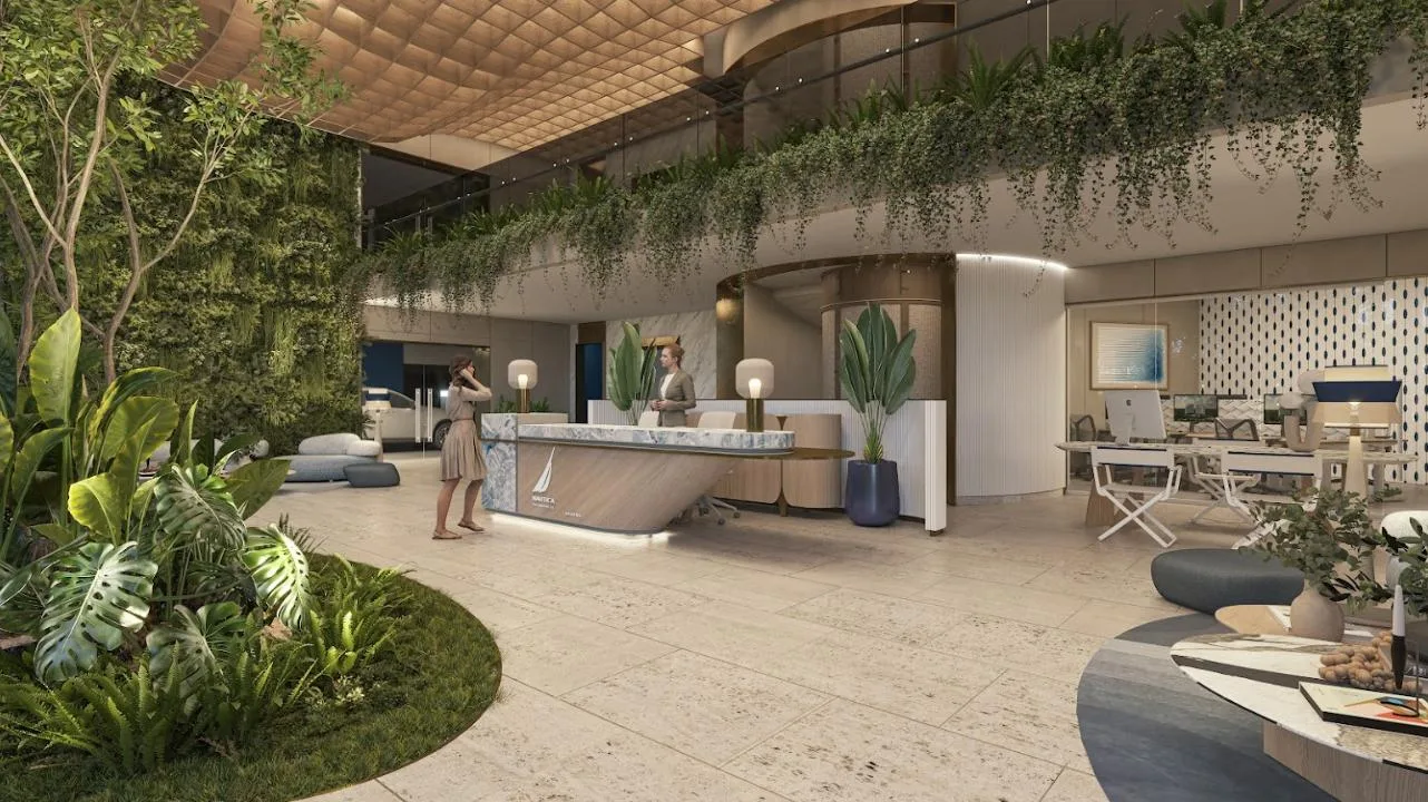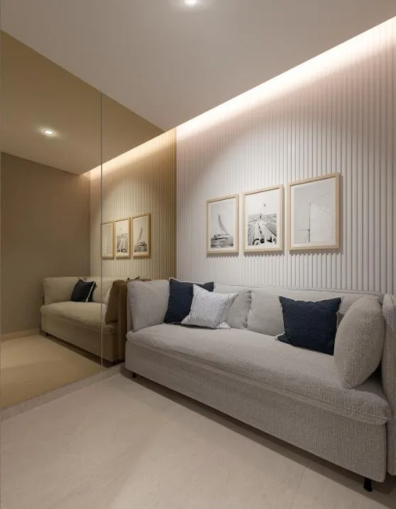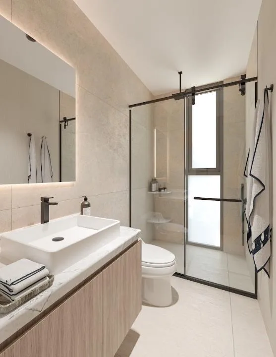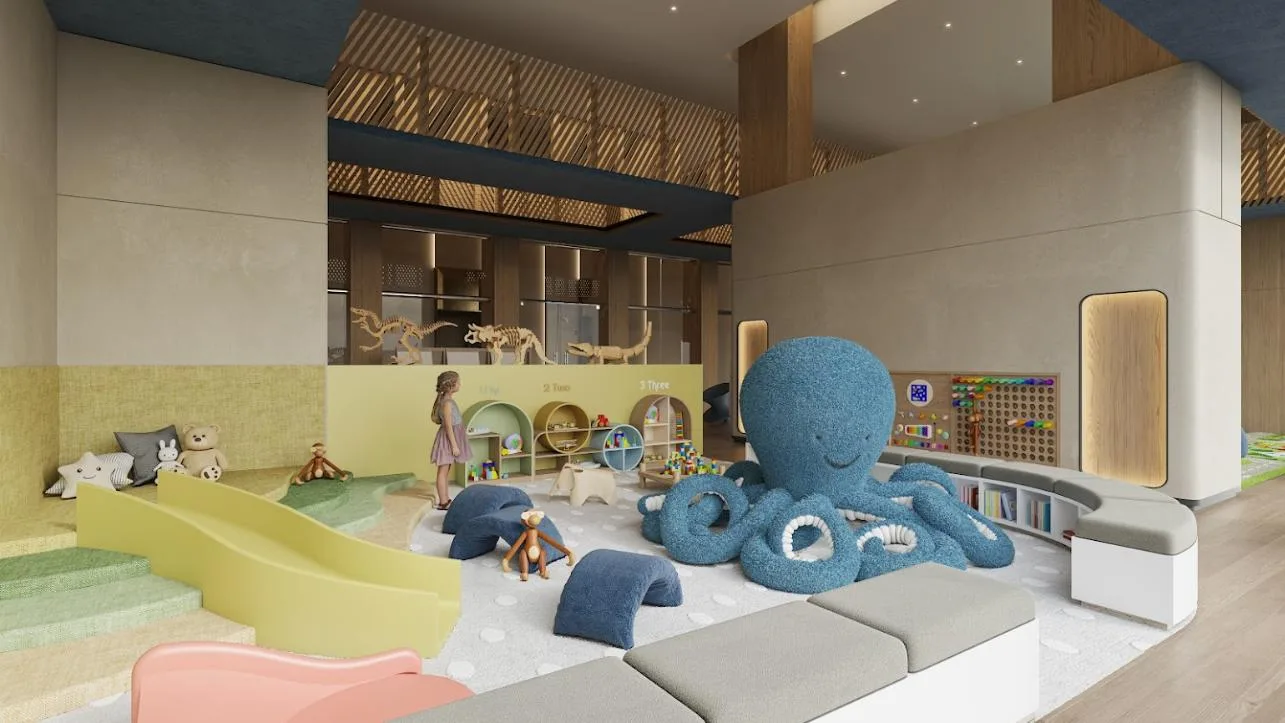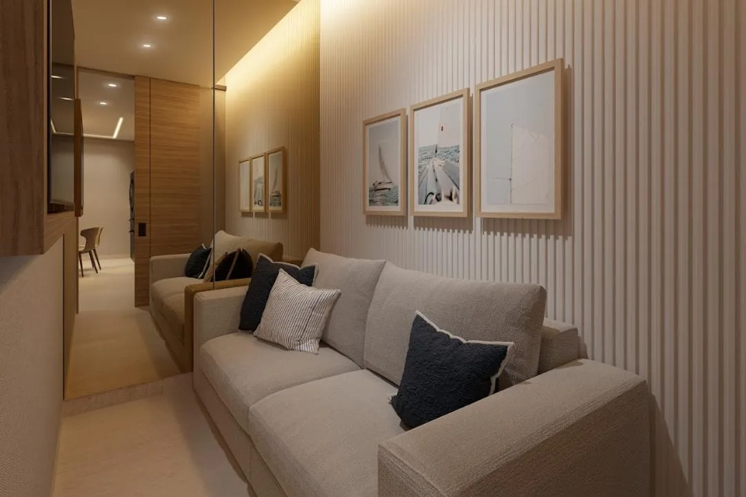 The apartment is part of a complex with two 20-level towers. The development provides over 50 amenities, including a private beach club, a wellness center and spa, and a sports area with paddle, tennis, and mini golf courts. Family and children's pools feature a Splash Zone and Aqua Slide. Additional amenities include a sports bar, cinema lounge, teens club, co-working spaces, a media room, and music hall. The complex also offers a pet zone, barber shop, kids club, restaurants, a piano bar, roof lounges, a marina deck, and an event hall. A high-security environment is maintained, and the location provides strategic connectivity to schools, shopping centers, and city services.