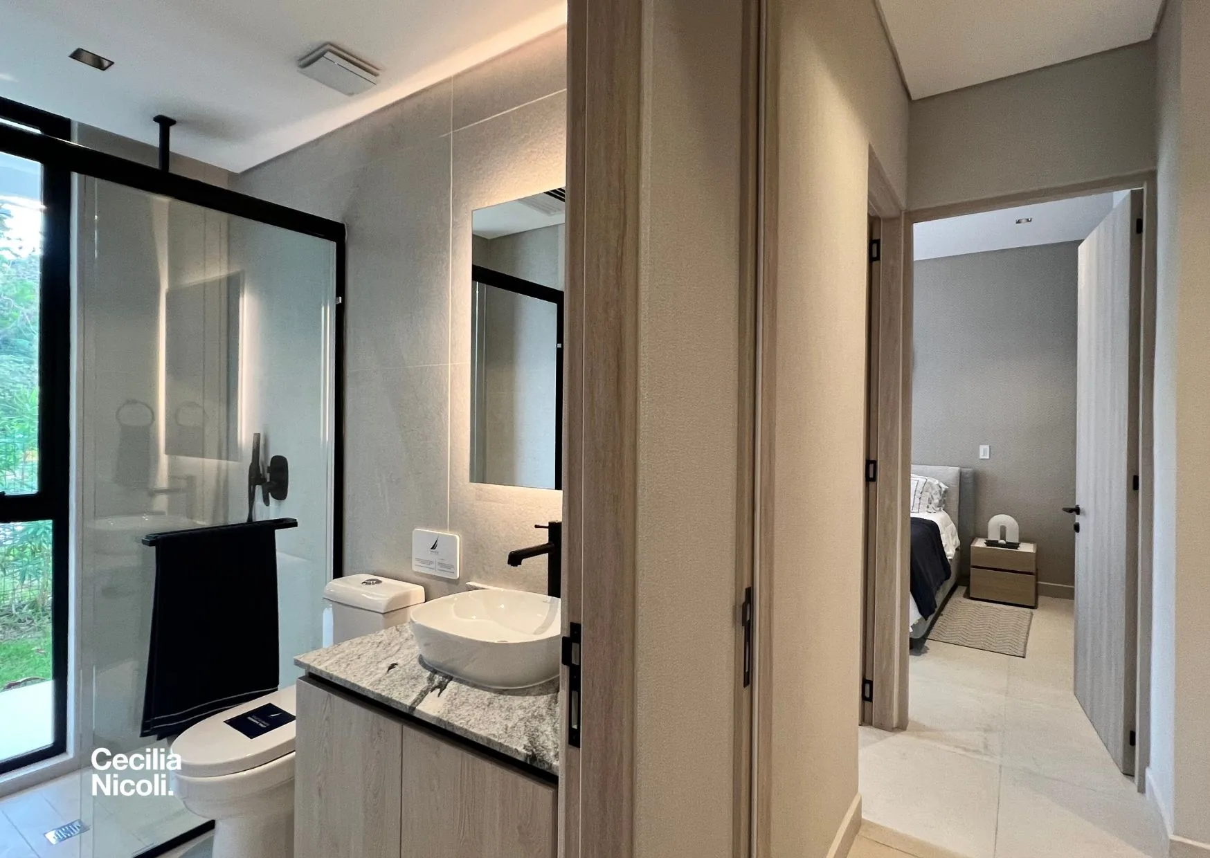 The residences feature bedrooms with closets and full bathrooms. The layout includes a social area with a terrace and an equipped kitchen. There is a separate laundry area and a den or flexible space suitable for a study or TV room. The units feature a modern cooling system of the fan & coil type, modern finishes, and an efficient layout.