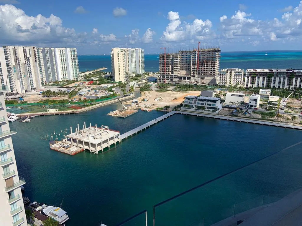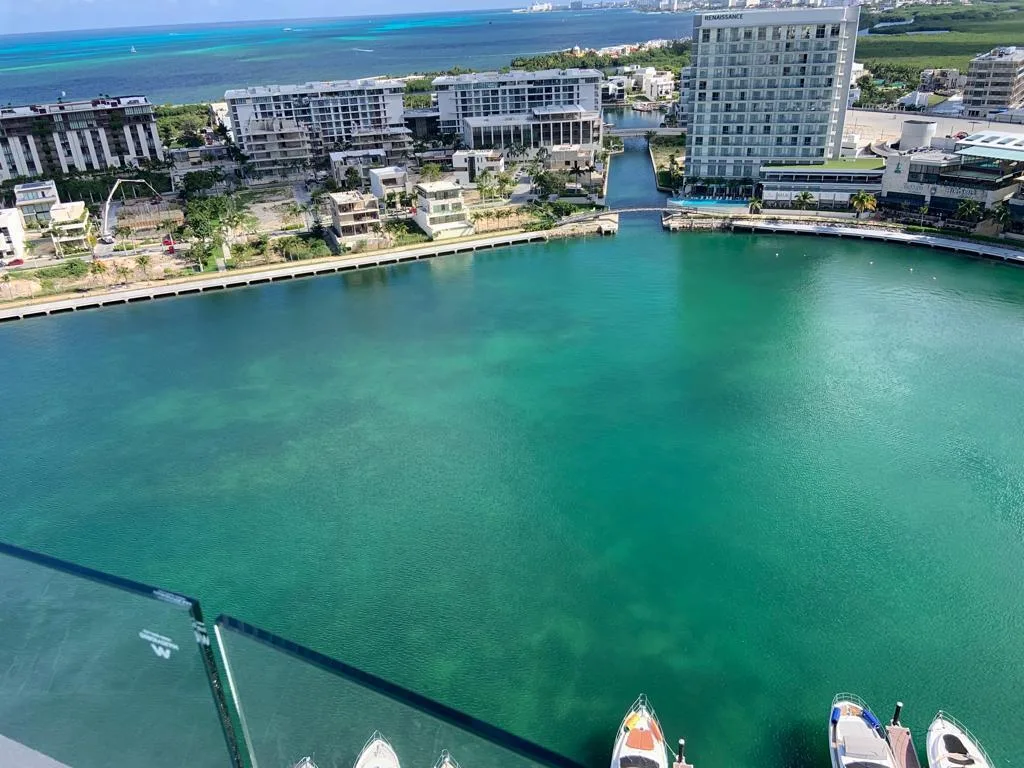 The property is situated in the Marina Puerto Cancún area of the Hotel Zone. This location offers immediate access to Caribbean beaches, navigable canals, and a marina for luxury vessels. The surrounding area provides services including the Marina Town Center, which features high-end restaurants, cafes, luxury boutiques, banks, premium supermarkets, and pharmacies. Several private hospitals, specialized clinics, and veterinary services are also located nearby.