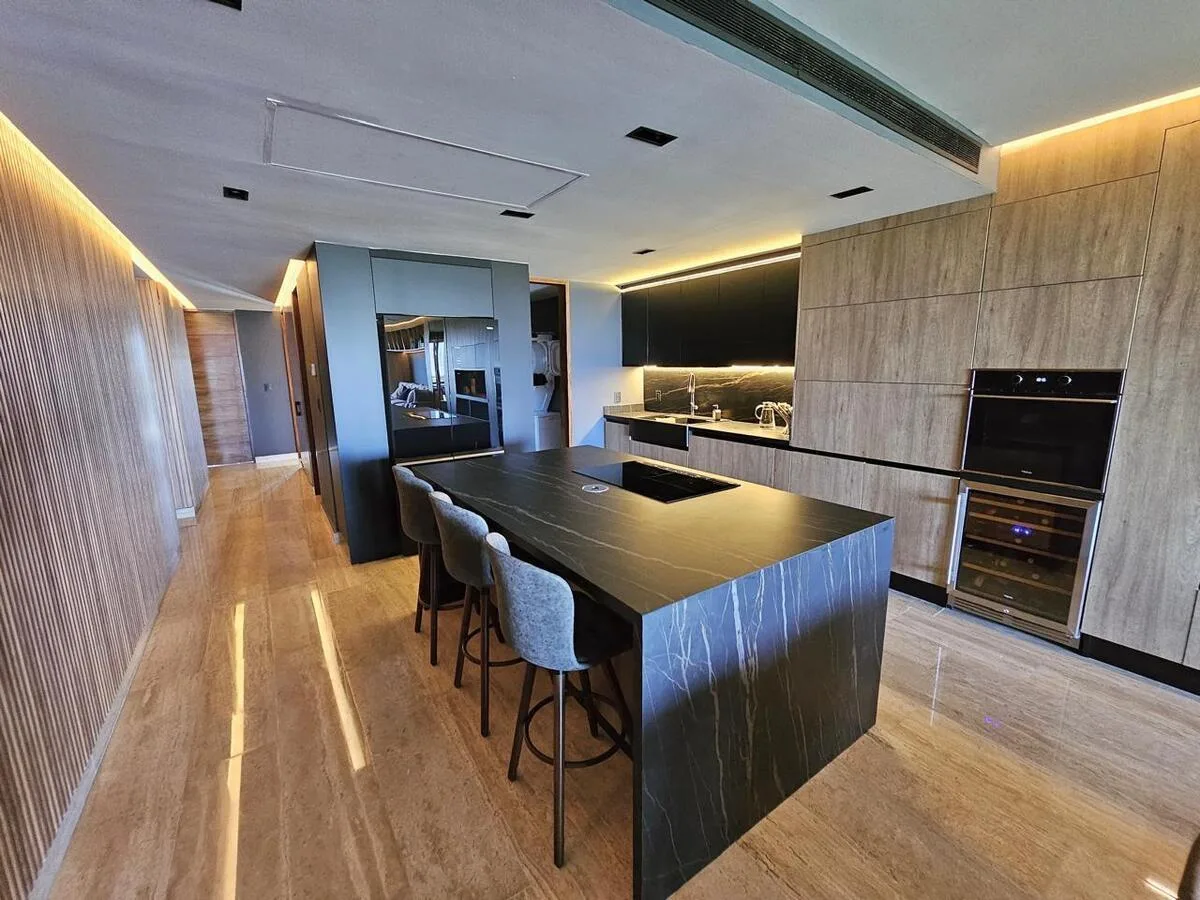 This spectacular apartment is located on the 9th floor and has been completely remodeled and furnished. The residence encompasses 199 square meters.