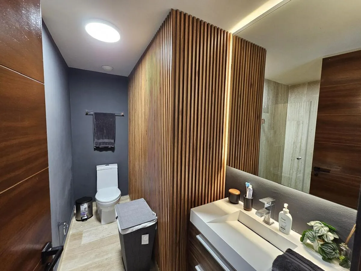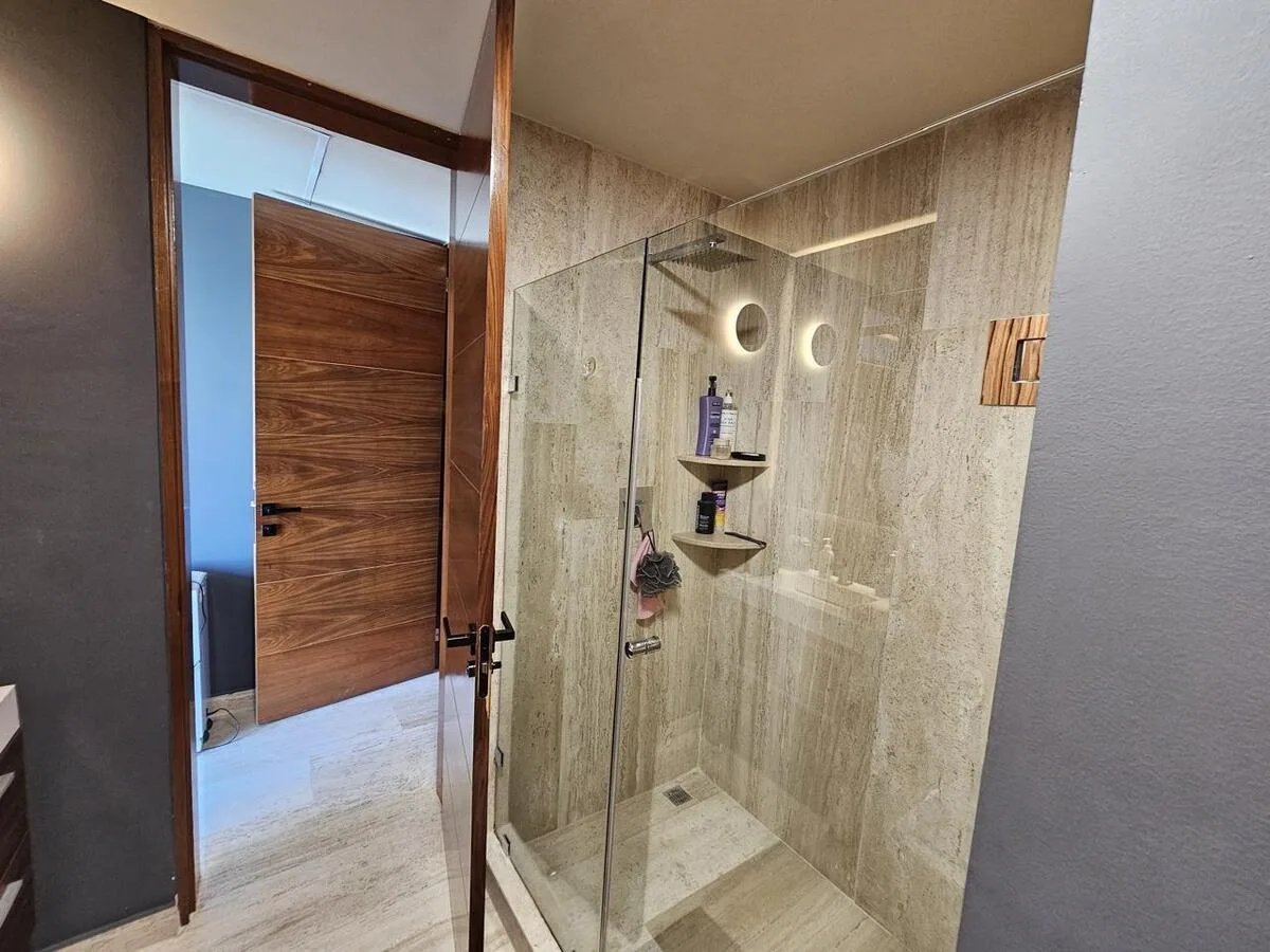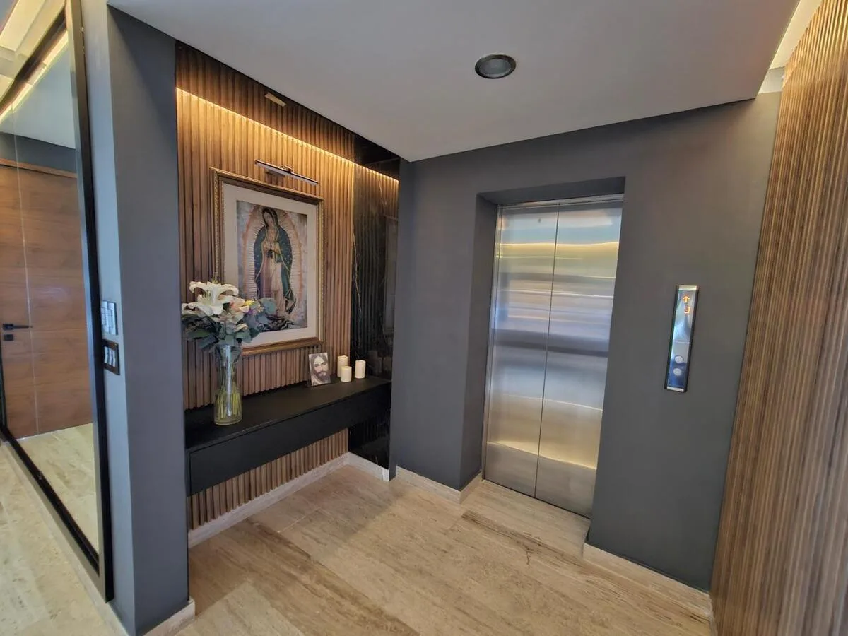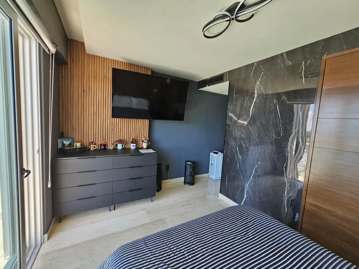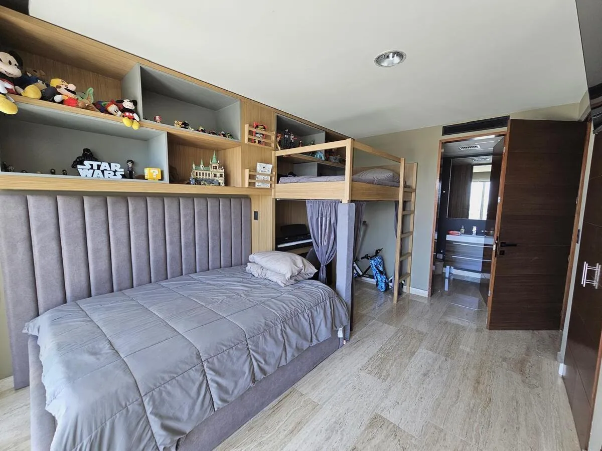 The building offers a comprehensive suite of amenities. These include swimming pools, a splash pool, a sand play area, a children's playground, and a palapa with a barbecue grill. Additional building amenities consist of a cinema room, a gym, a playroom, billiard rooms, an adult-only pool, and a basketball court.