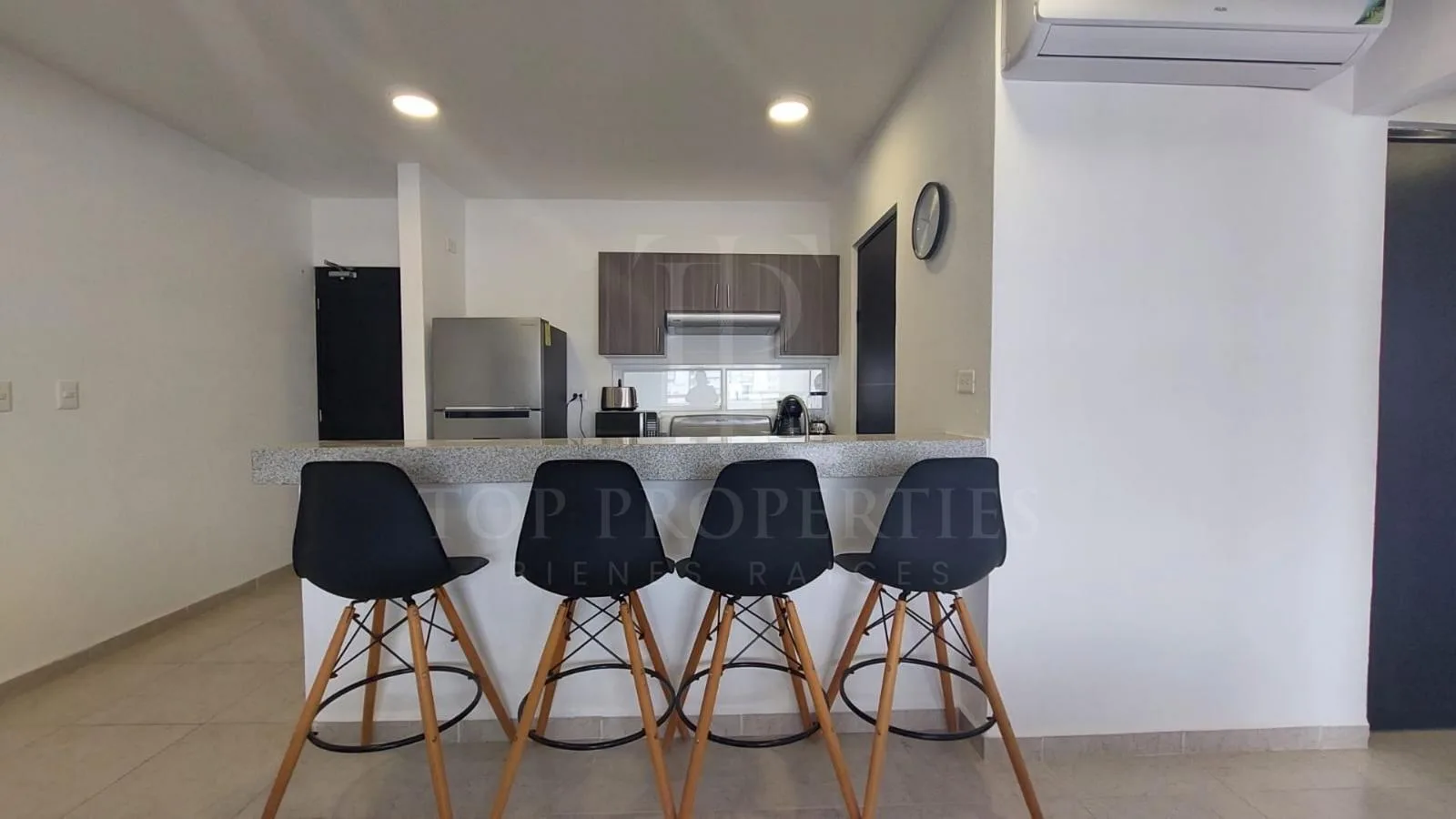 This modern apartment is located in the Residencial Liverté complex in Cancún. It offers a construction area of 93. 62 square meters and a land area of 81. 12 square meters.