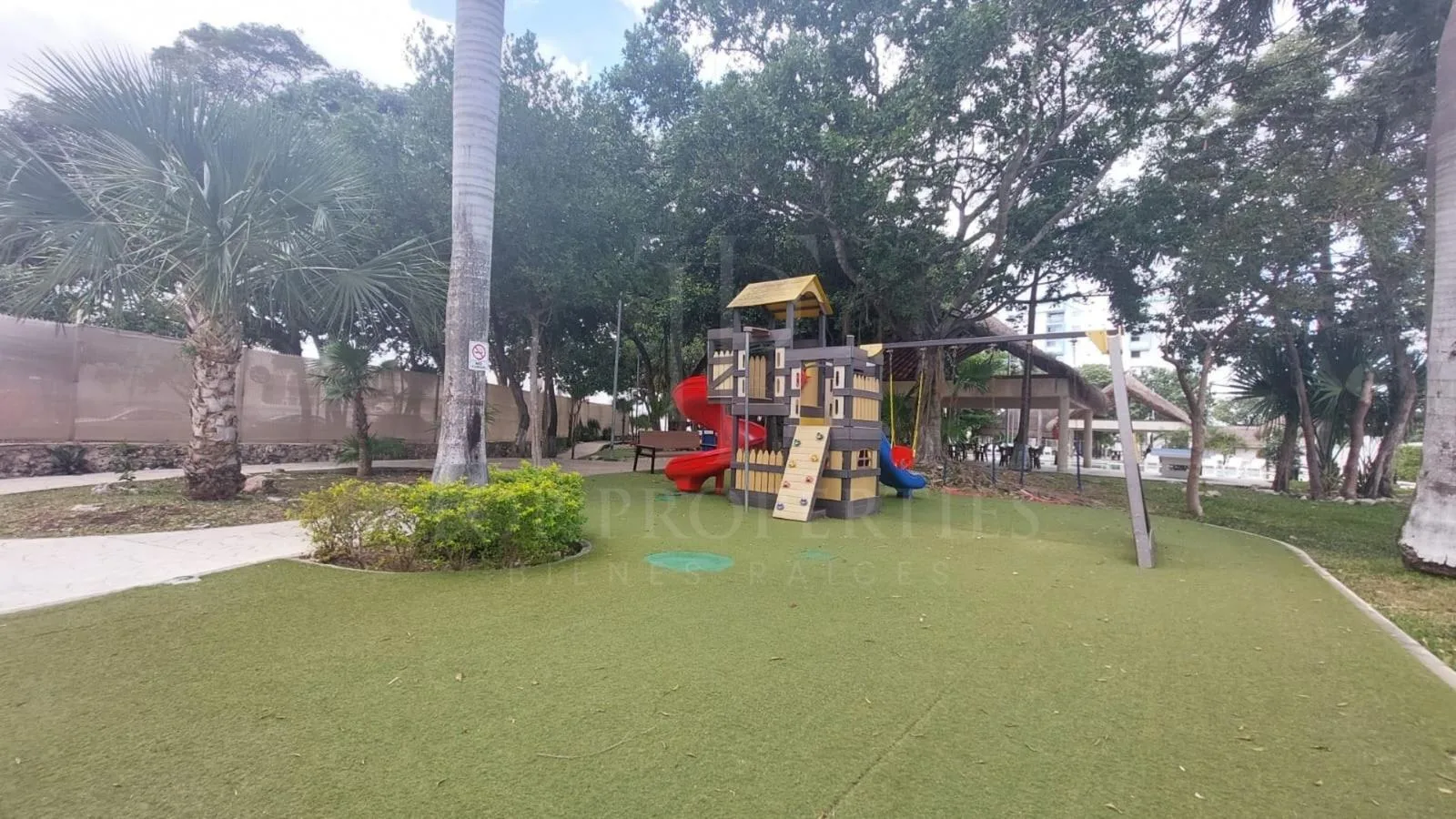The residential complex includes an aquatic complex with a semi-Olympic pool, a children's pool, and a third uncovered pool. There is also a soccer field for children, along with controlled access and 24/7 surveillance.