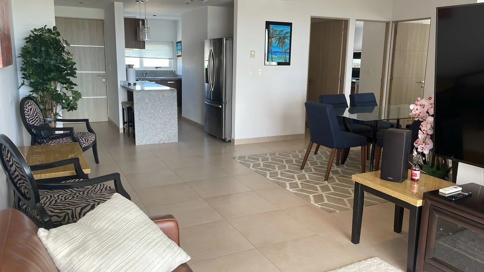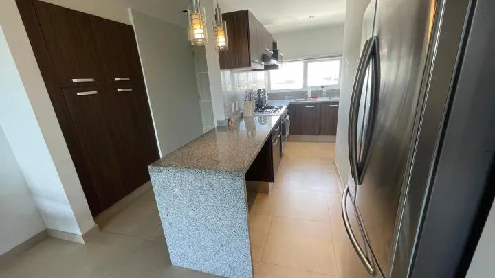 This apartment offers views of the ocean and lagoon, situated a short drive from the beach within one of the newest towers of the Malecón Américas complex. The unit comprises 135 square meters of construction on the 9th floor and is very well-lit.