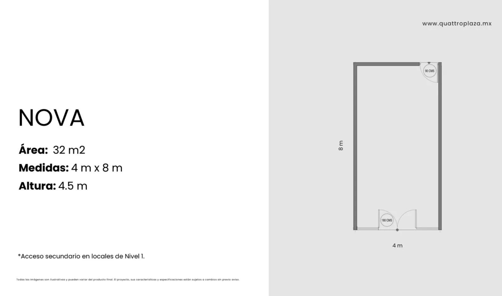The Nova unit has a total area of 32 square meters, with 4 meters of frontage and a depth of 8 meters.