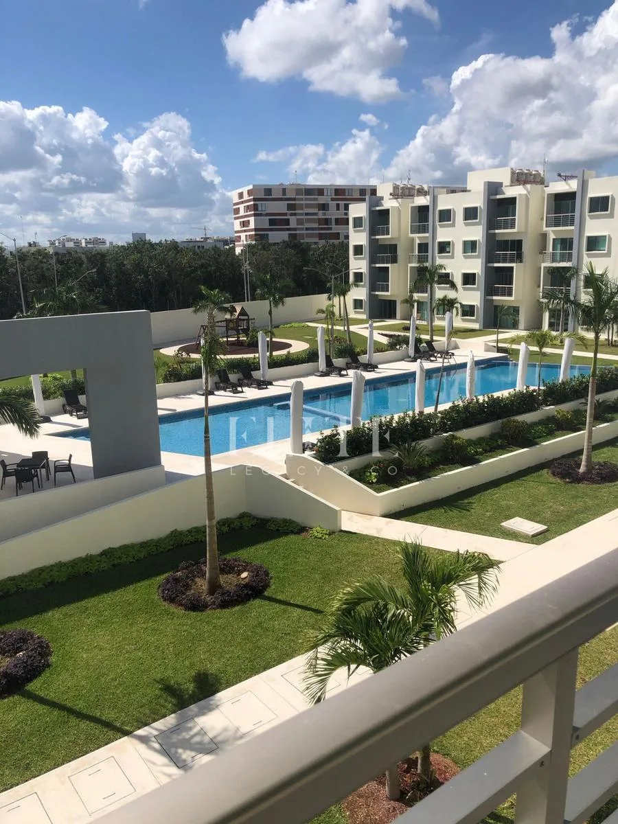 Building amenities include a sun deck area, a swimming pool with a wading area, a common lounge area, showers and bathrooms in the common area, and green spaces.