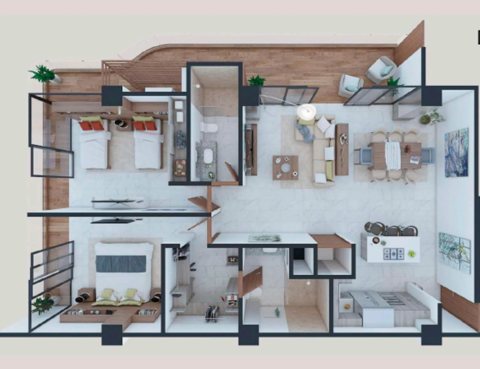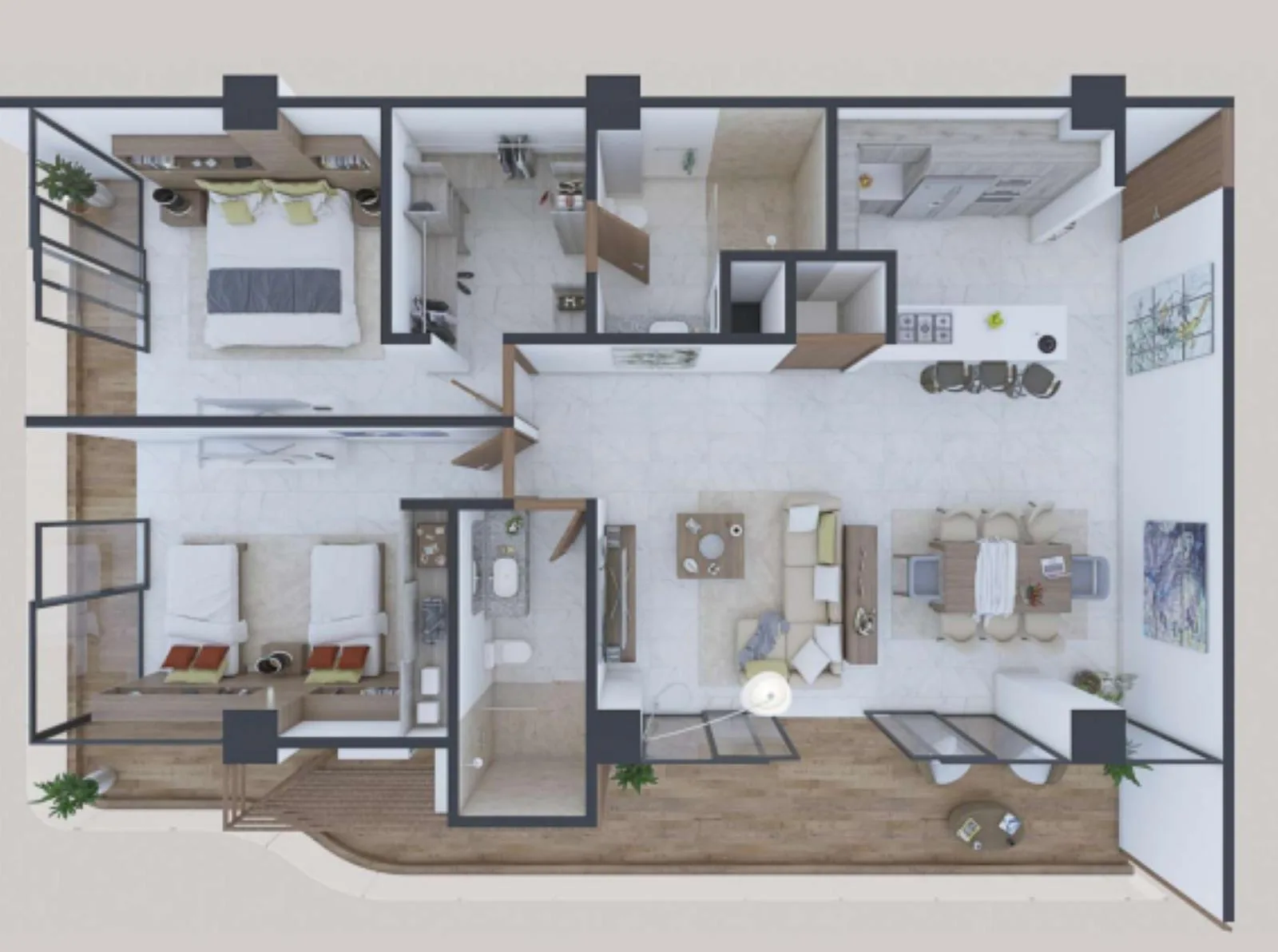 Three 8-Story Residential Towers with 2-3 Bedroom Apartments and Resort-Style Amenities