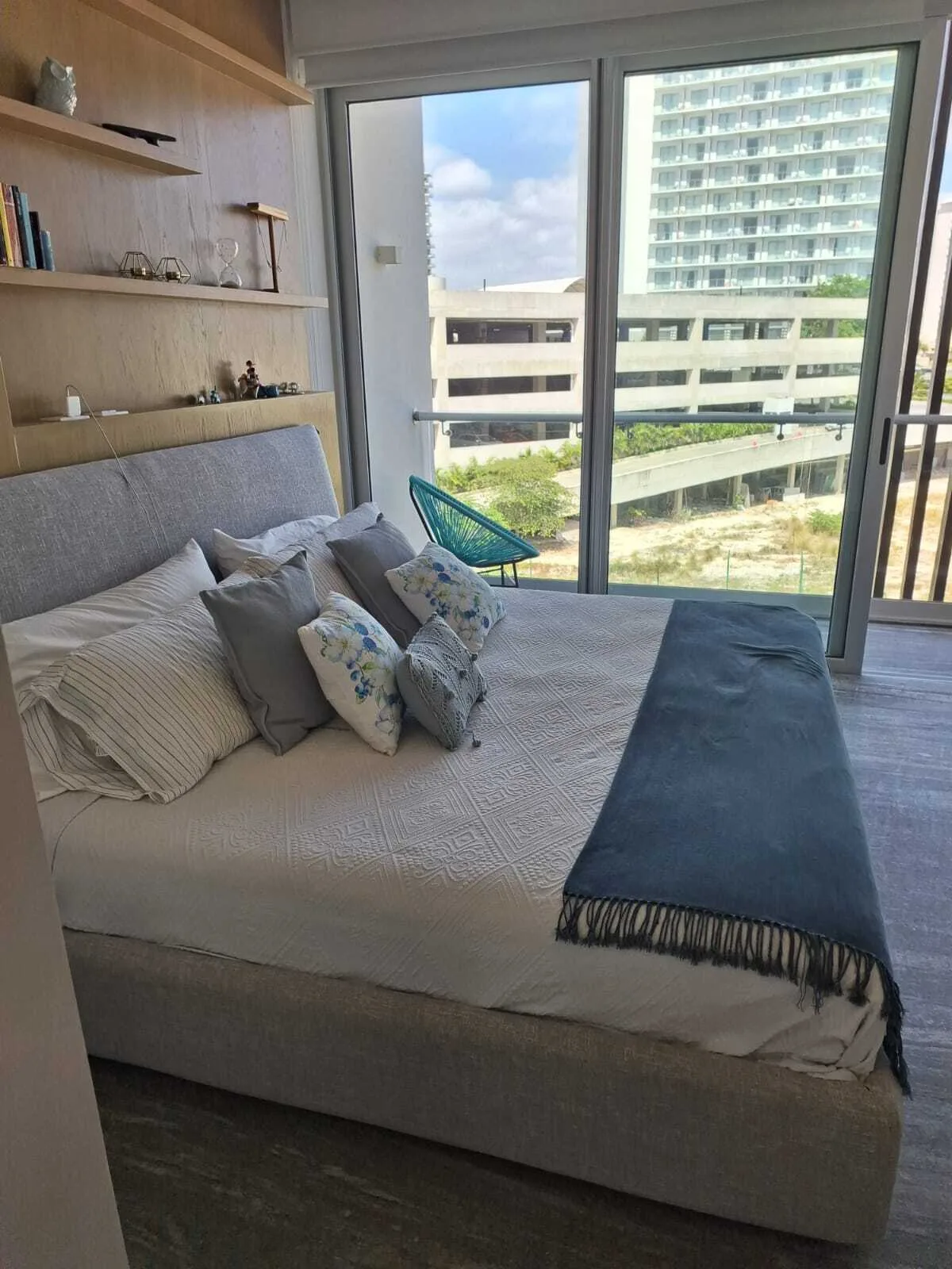 Amenities include a rooftop pool and jacuzzi with panoramic views of the Caribbean Sea, along with a fully equipped gym. The Drop Off dock provides direct water access, and a playroom is available for children. Membership and access to an exclusive beach club are included.