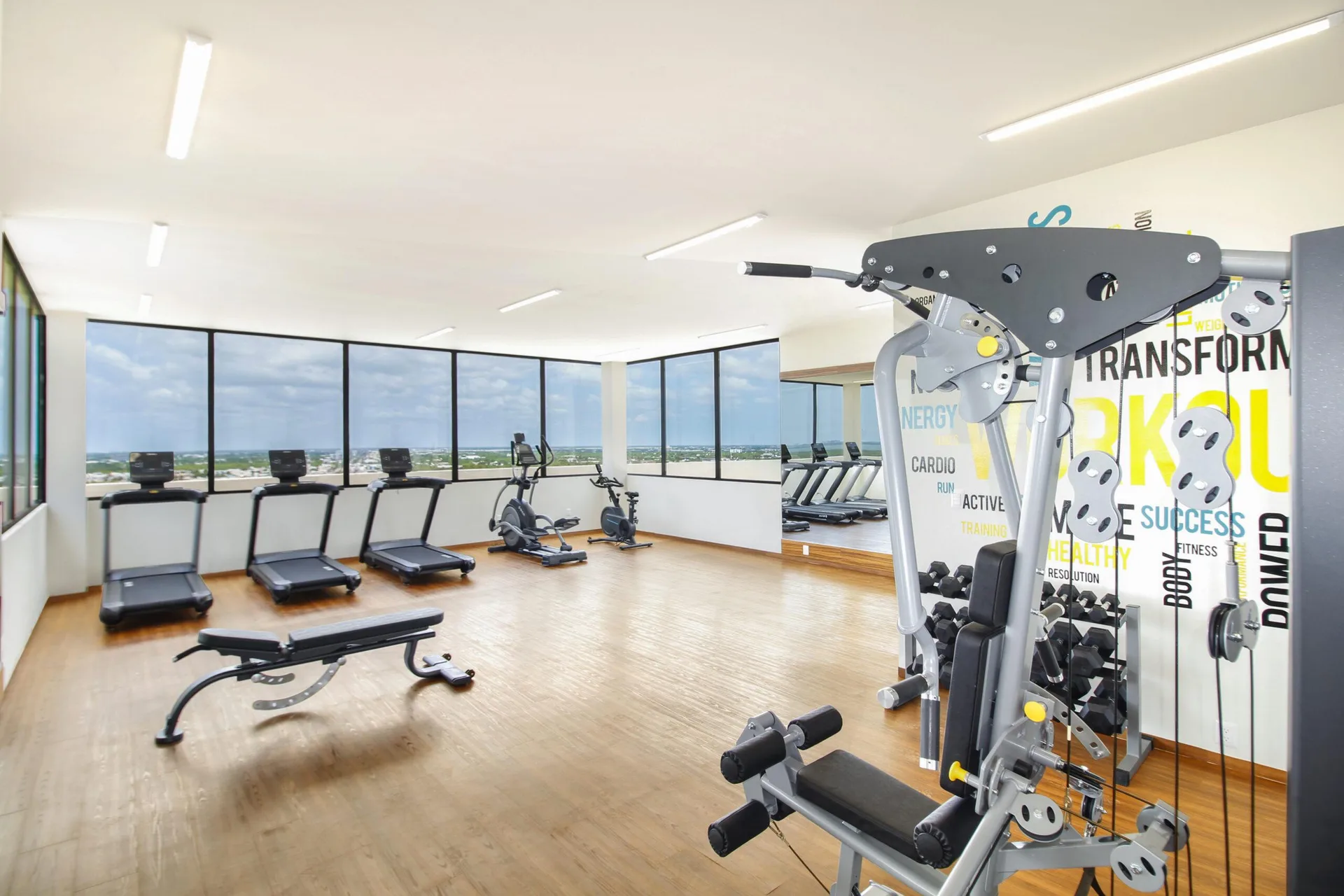 The location is approximately 12 minutes from Cancún International Airport. It is close to major shopping centers, restaurants, banks, hospitals, plazas, water activities, and cinemas. The property is also near the Tren Maya and the new Nichupté Bridge, which connects to the hotel zone and its white-sand beaches.