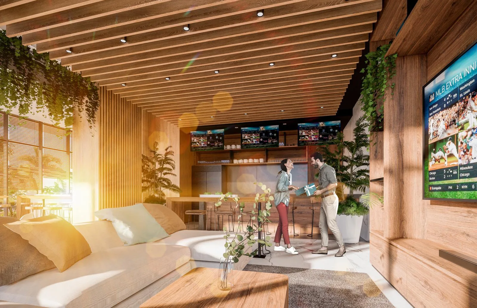The property includes a semi-Olympic swimming pool, children's pools, and an indoor and outdoor children's club. Additional amenities consist of a spa, a steam bath, a gym, a ballroom, a sports bar, and a grill area.