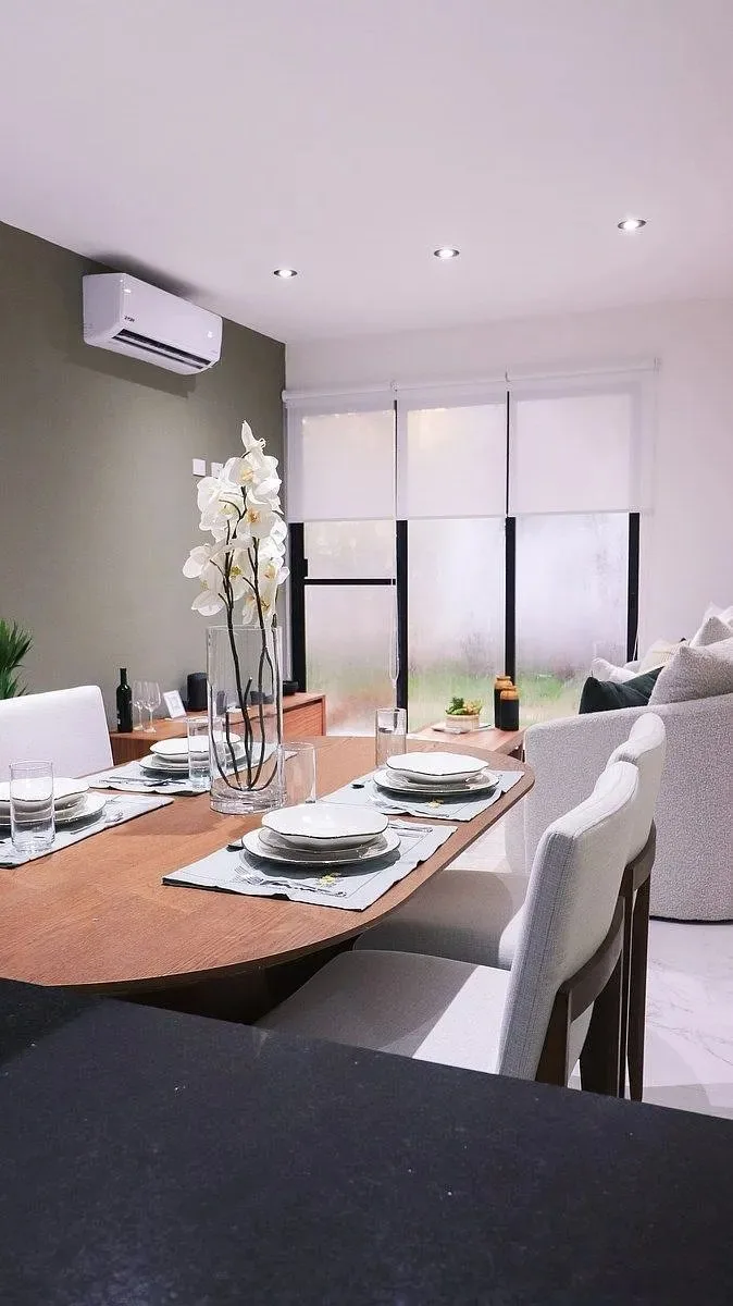 These are two-bedroom, two-bathroom apartments that are fully equipped. Each unit includes inverter air conditioning systems, window blinds, and bathroom fixtures. The apartments are ready for immediate use.