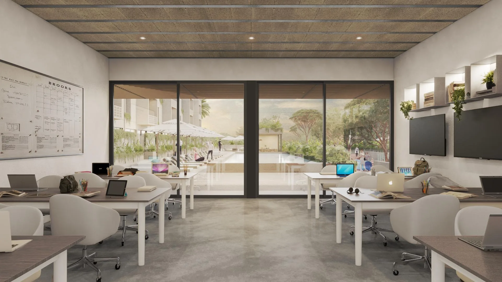 The residential experience is enhanced by a comprehensive suite of amenities designed to enrich daily life. These include a fully equipped gym, a dedicated coworking zone, and relaxation by one of four swimming pools surrounded by green areas. The property ensures absolute tranquility with 24-hour security and controlled access. Community-focused spaces include a pet park, BBQ areas, and children's play zones.