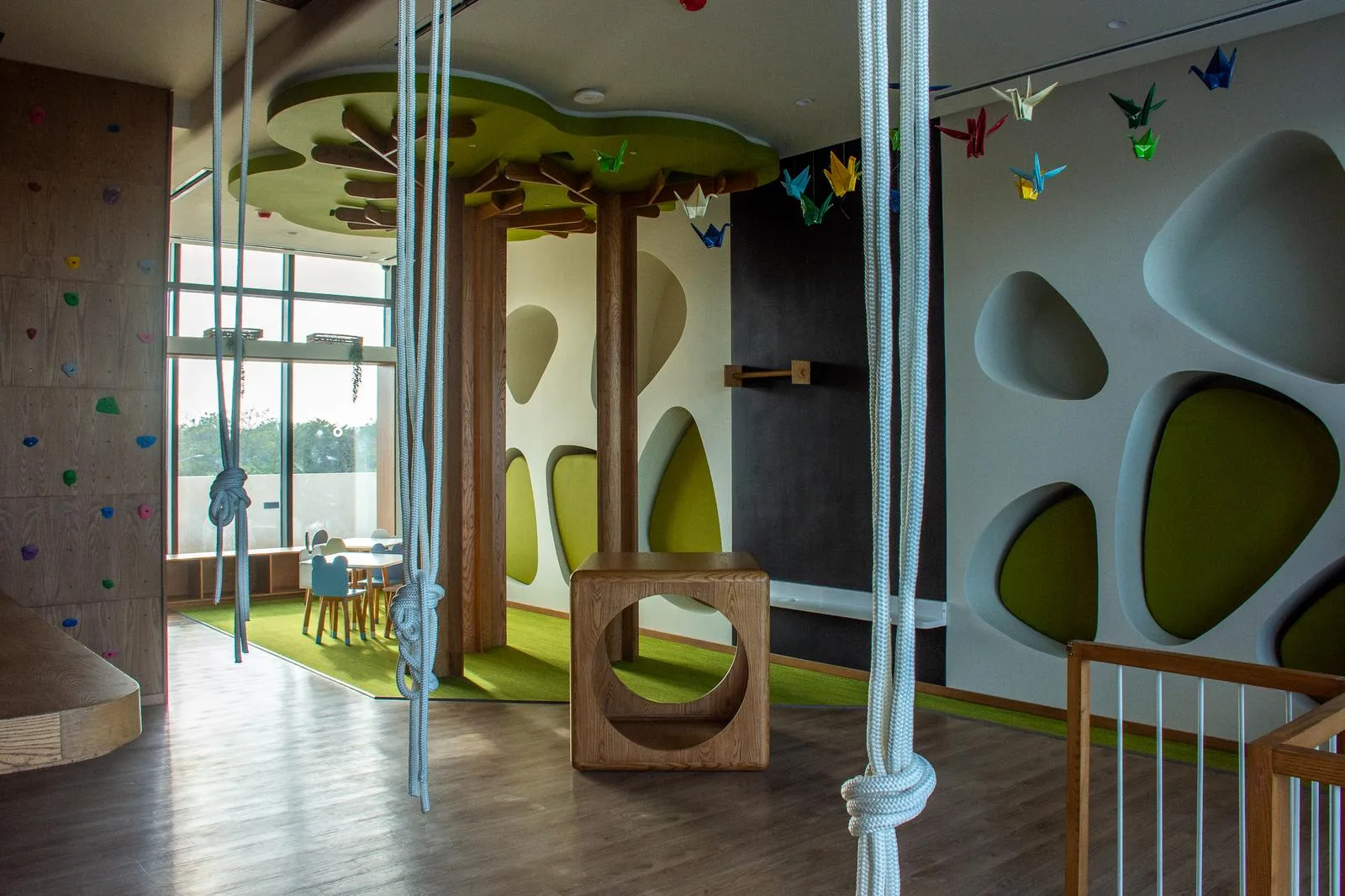 The building incorporates advanced green technologies for efficiency and responsible living. These include solar panels, cross ventilation, water catchment systems, and low-consumption, high-efficiency LED lighting.