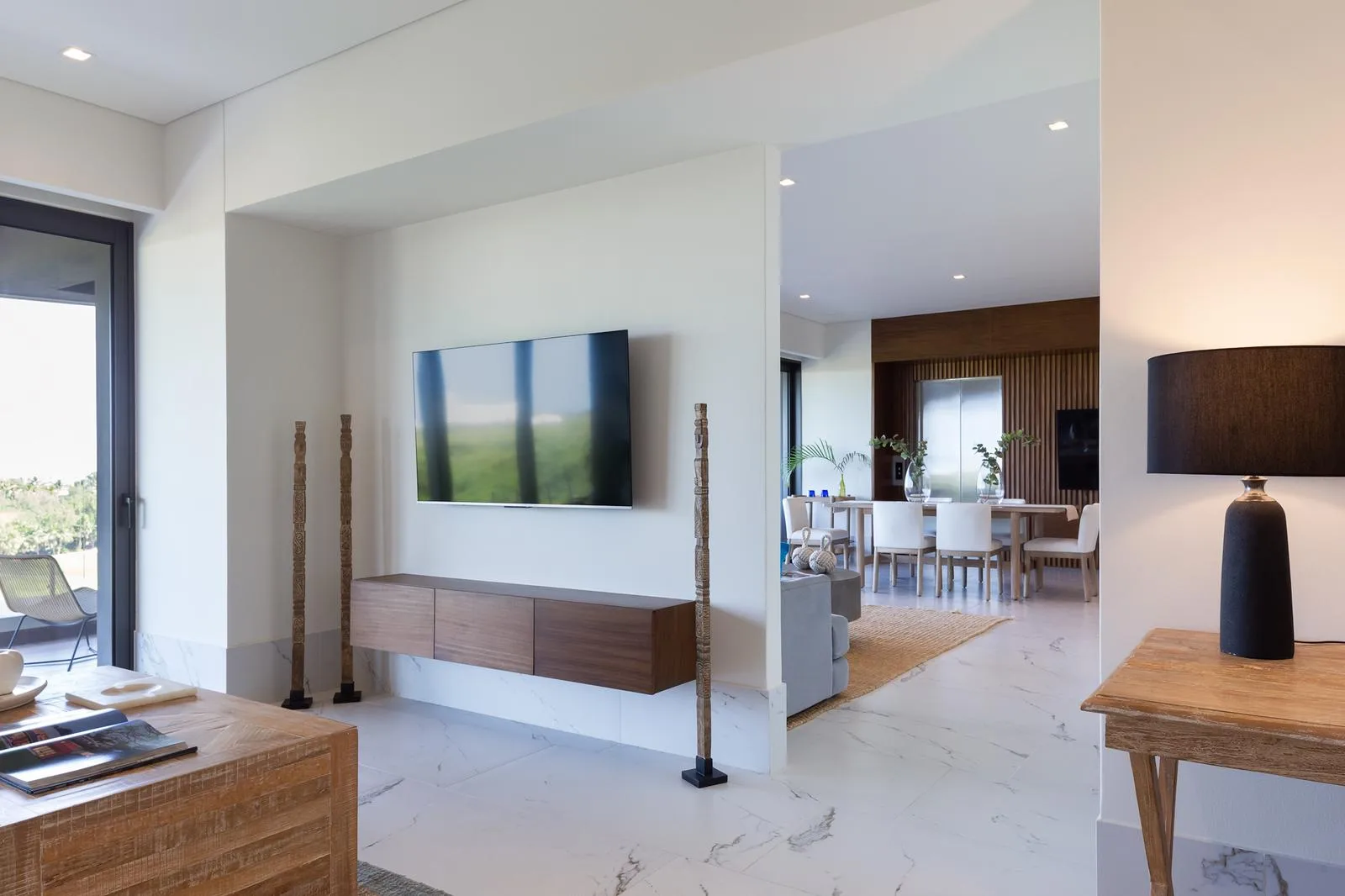 Units offer impressive panoramic views of the sea, the golf course, and the natural reserve. Two-bedroom residences are available from approximately 112 square meters. Three-bedroom residences are available from approximately 224 square meters.