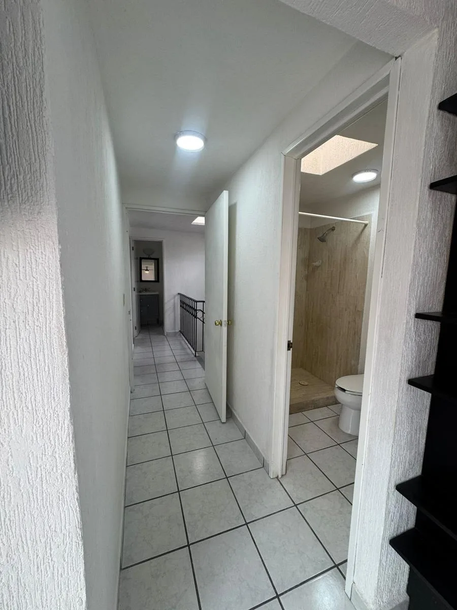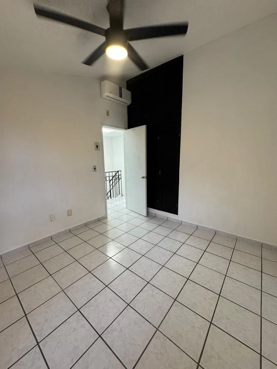 The upper floor includes three bedrooms. The master bedroom has a full bathroom, and all bedrooms are equipped with closets, air conditioning, and fans with control. There are two full bathrooms on this level.