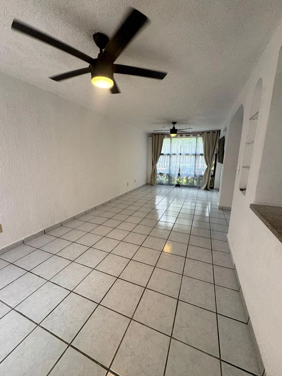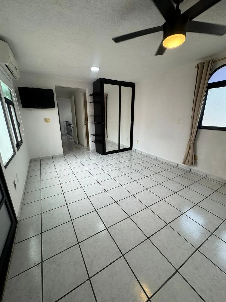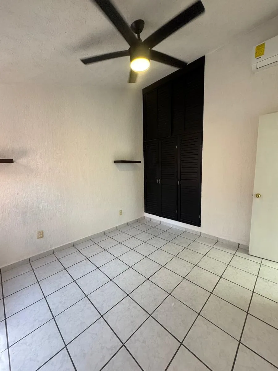 Residential amenities offer covered parking for two cars, a 24/7 security booth, a communal pool, a palapa, and sunbeds. The property is situated in the central SM 18 area.