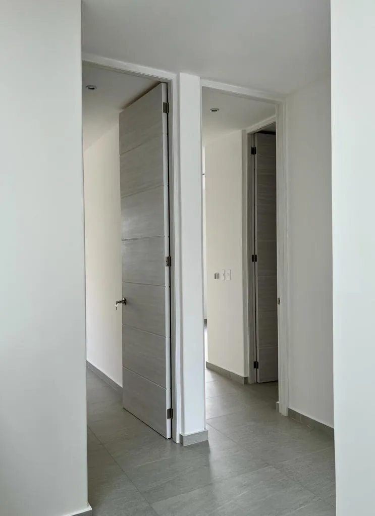 The first level features an integrated kitchen, a spacious living and dining area, a guest bathroom, and a private swimming pool. This level also includes a room with a full bathroom.