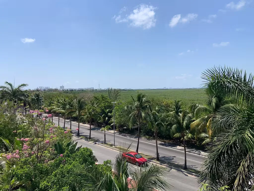 The third level offers a 360-degree panoramic roof garden with views of the Caribbean Sea, mangroves, the Puerto Cancún marina, and the Hotel Zone.