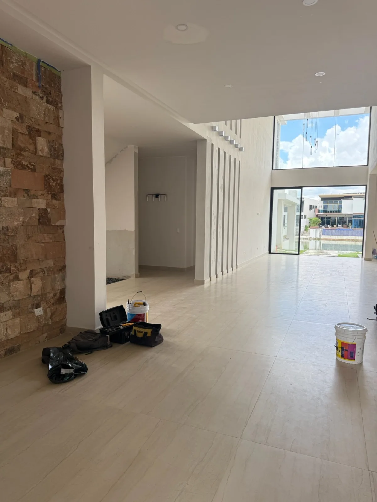 The Lagos del Sol community offers amenities including a clubhouse with a semi-olympic pool, children's pool, two tennis courts, a squash court, a basketball court, a cafeteria, steam baths, and a multi-purpose hall. There is 24-hour security with a guardhouse and surveillance cameras.