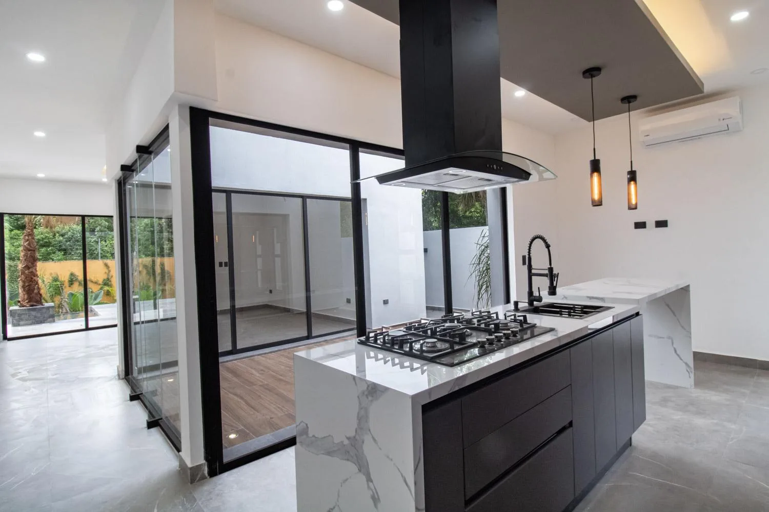 The residence is equipped with inverter air conditioners in each zone, a cistern, water heater, water tank, pool machine, and a pressurizer. Community amenities include a Club House, cafeteria, gym, pool, sports courts, tennis court, squash court, chess and ping pong area, pet park, children's area, skate park, kids' fountain, 24/7 security, and an electrified perimeter wall.
