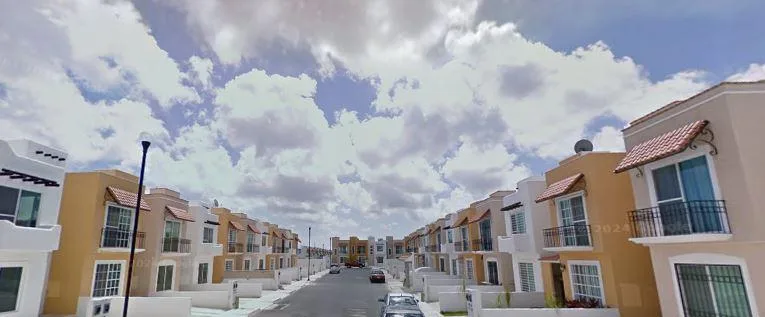 This house is situated at Lane Paseo de León, Block 25, Lot 04, house 18, in the Santa Fe subdivision of Cancún.