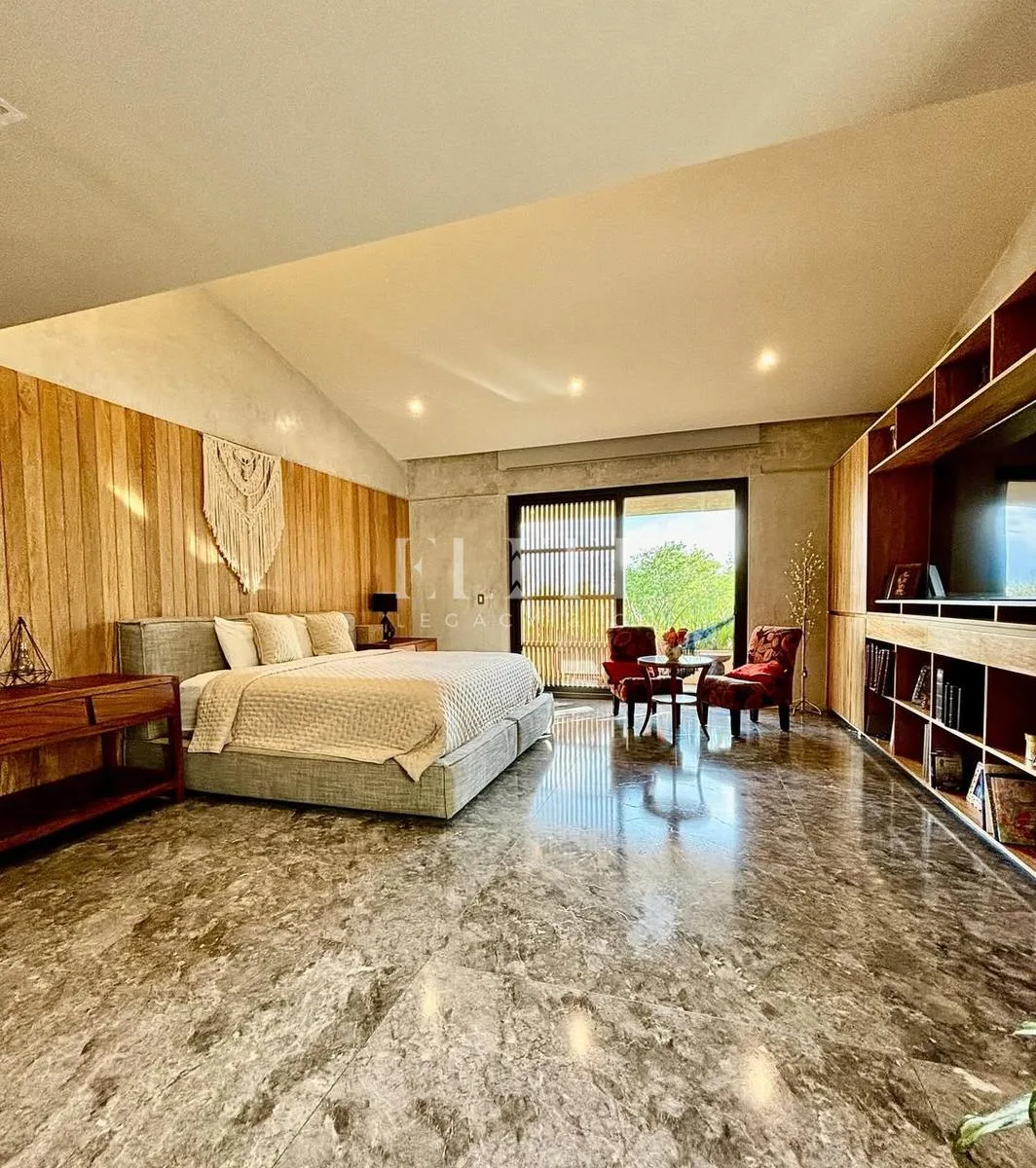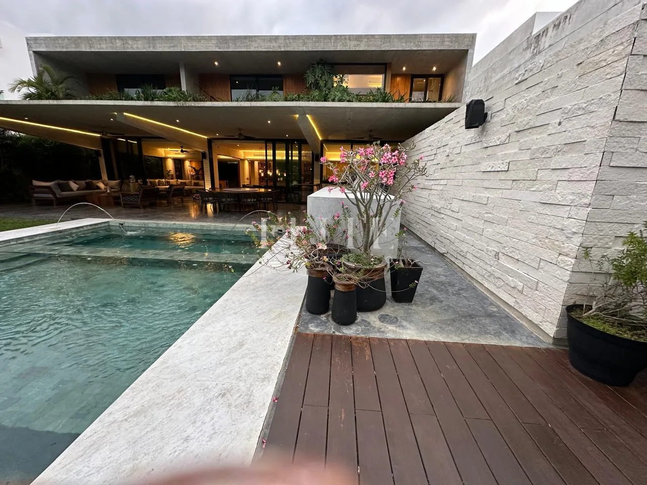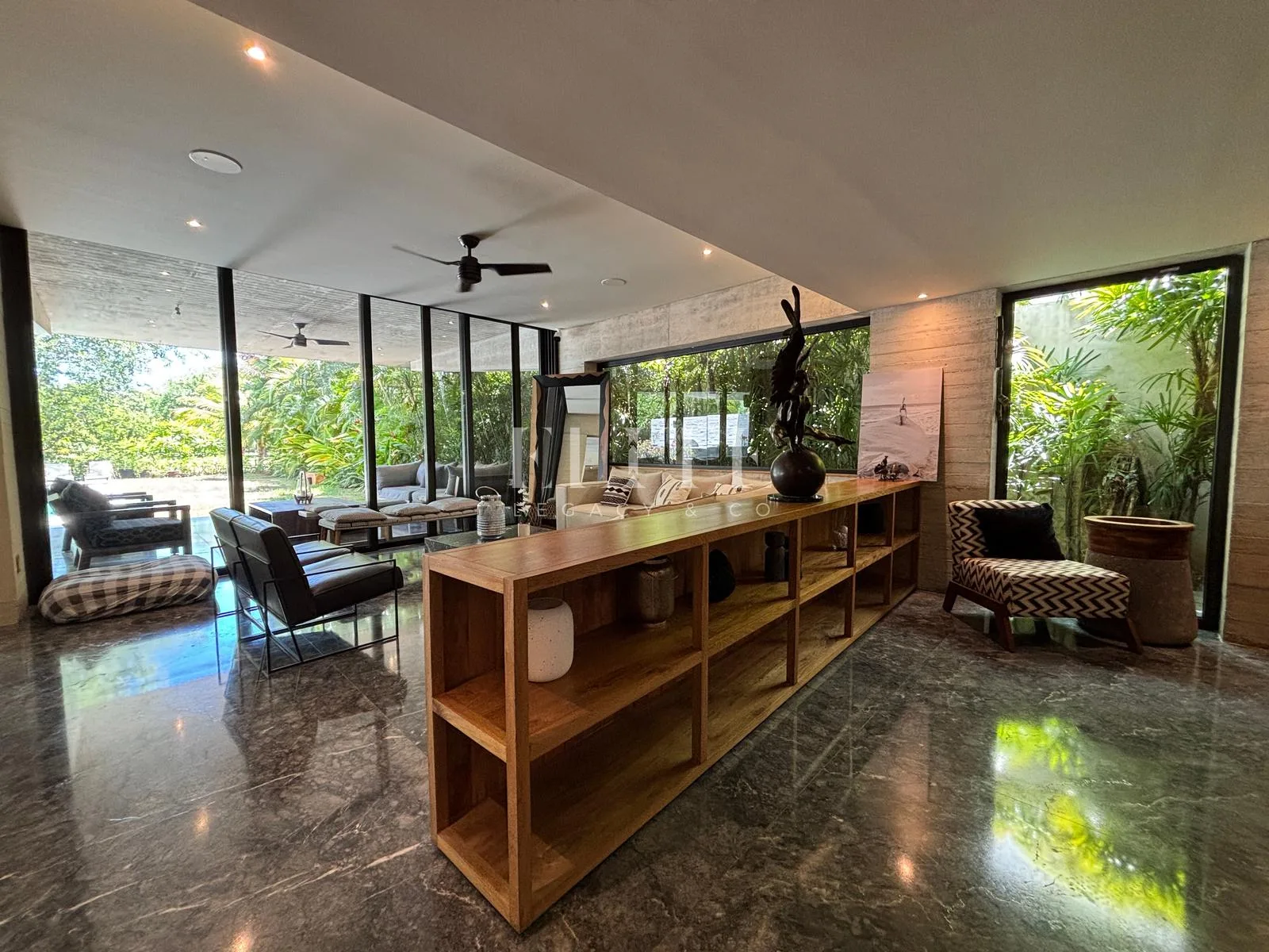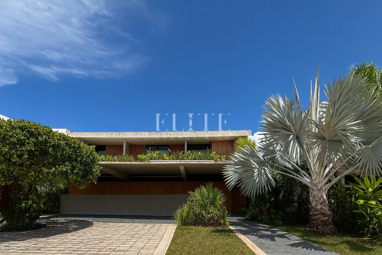 This residence is situated in Lagos del Sol, a community featuring over 40 hectares of freshwater lakes and extensive amenities. The property occupies a 1, 050 m² lot and was designed by architect Juan Carral. It incorporates avant-garde architecture with spacious layouts, high ceilings, and large windows that open to private gardens and social areas. The design follows a minimalist and elegant style, using high-quality materials and clean lines to blend interior and exterior spaces.