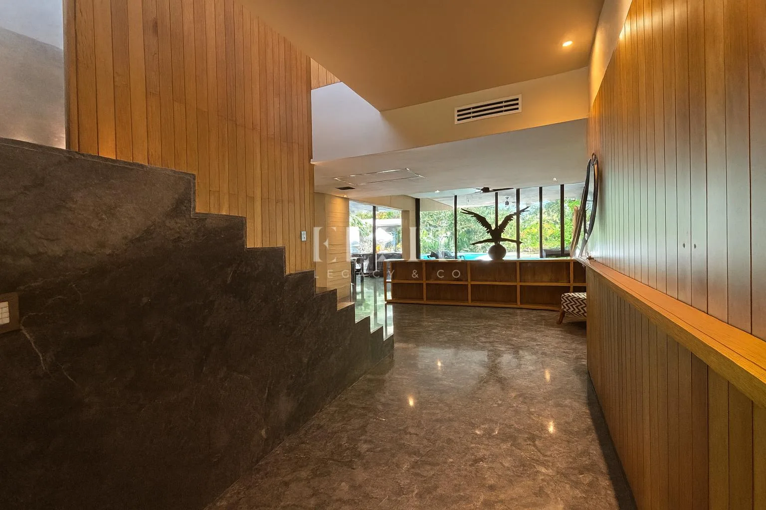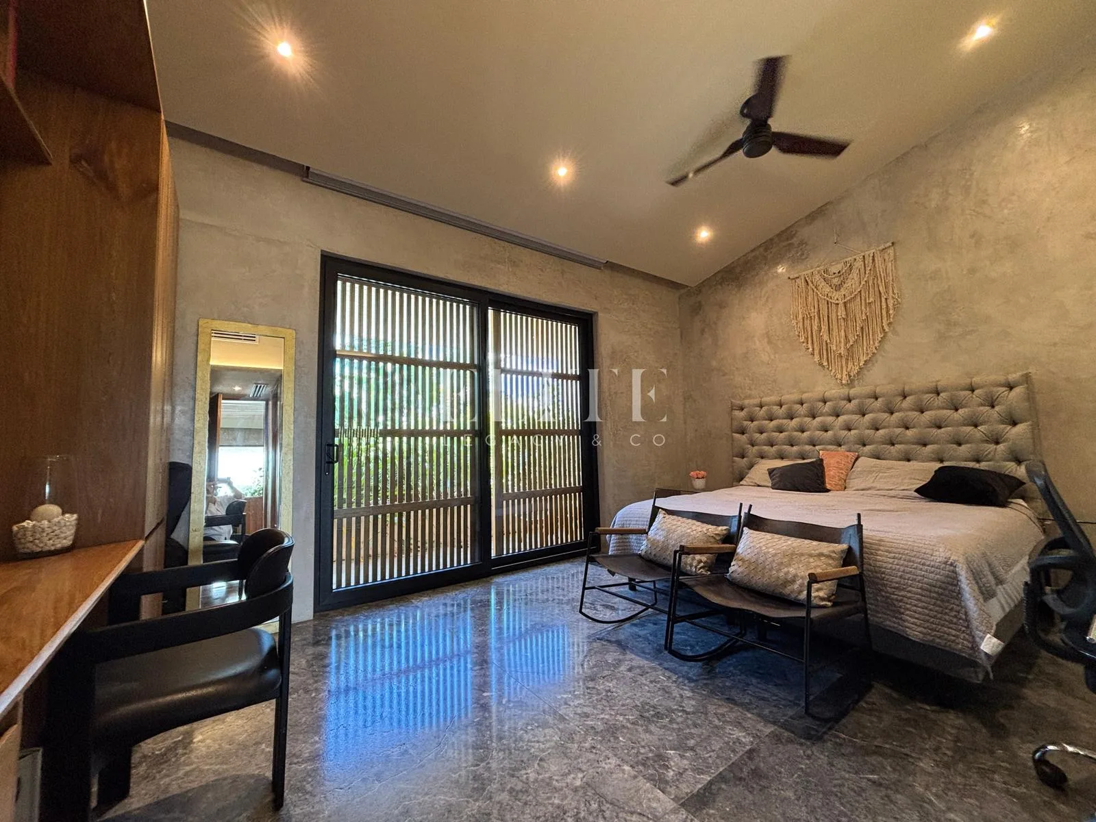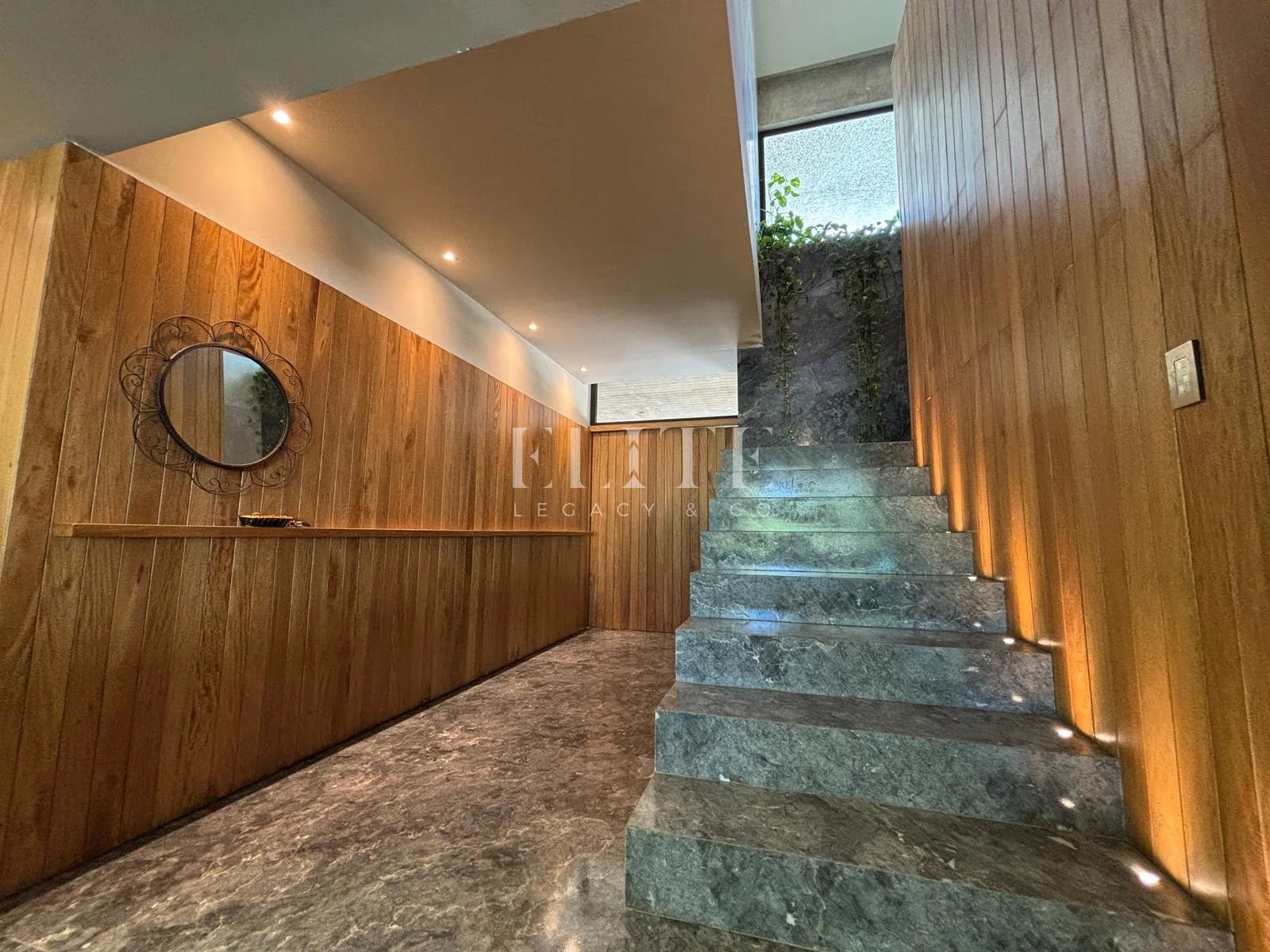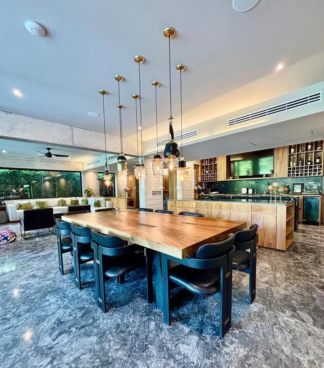 This residence is situated in Lagos del Sol, a community featuring over 40 hectares of freshwater lakes and extensive amenities. The property occupies a 1, 050 m² lot and was designed by architect Juan Carral. It incorporates avant-garde architecture with spacious layouts, high ceilings, and large windows that open to private gardens and social areas. The design follows a minimalist and elegant style, using high-quality materials and clean lines to blend interior and exterior spaces.