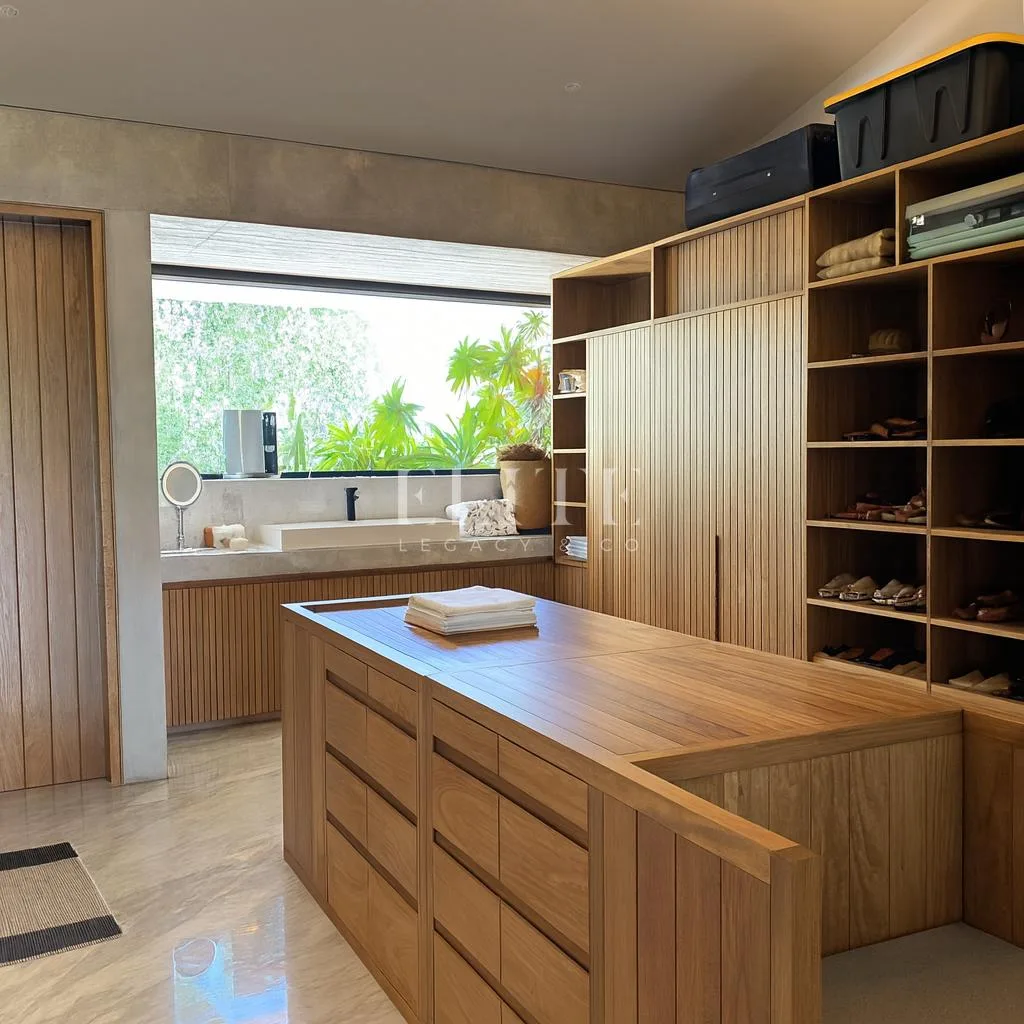 The second level comprises the primary bedroom with a spacious walk-in closet and full bathroom. Three secondary bedrooms each feature a full bathroom and closet. This level also includes an equipped cinema with projector and sound system, and a laundry and ironing area.