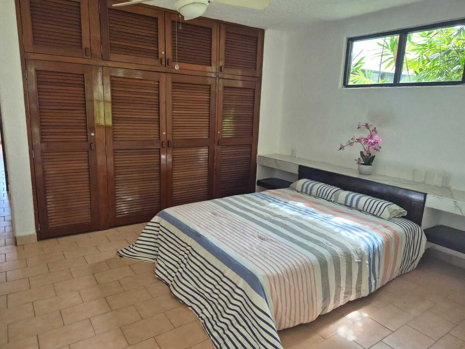 The property features four spacious bedrooms. The primary bedroom includes a large walk-in closet and a jacuzzi. A separate service room is also available.