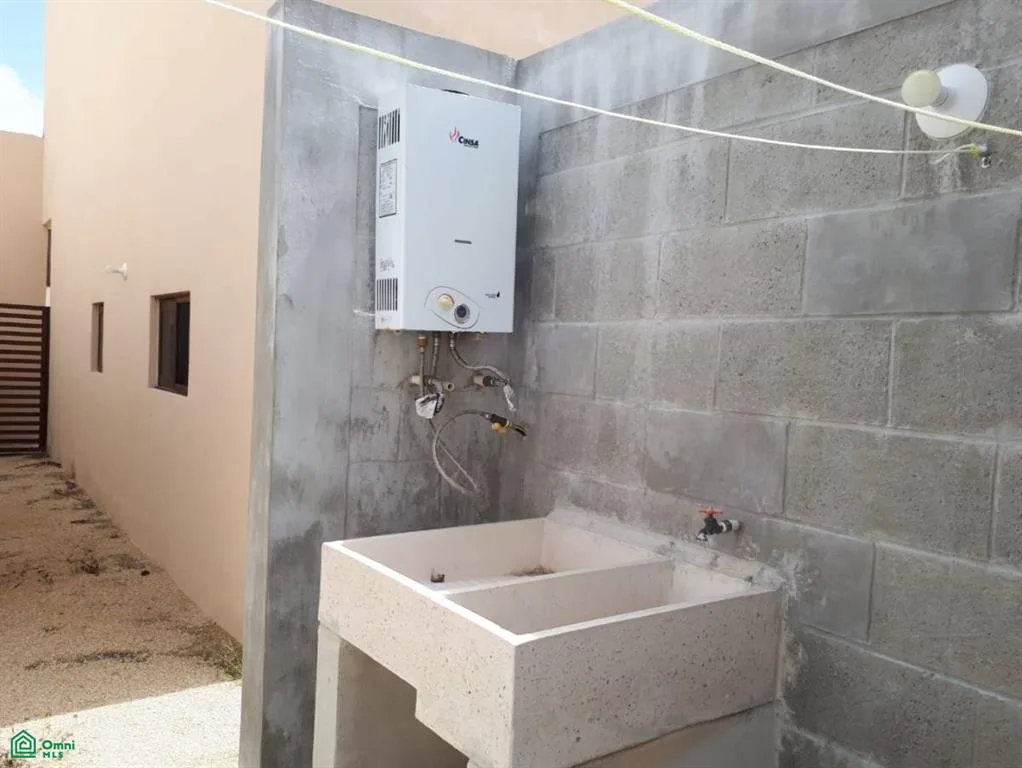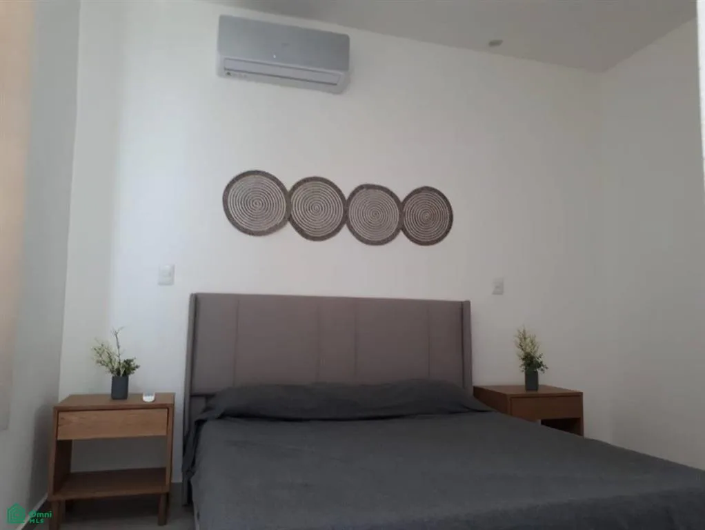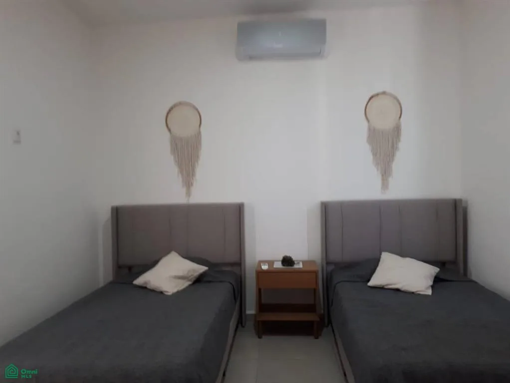 The upper floor is dedicated to two bedrooms, each with closets and curtains. A full bathroom serves this level. The home is fully furnished and comes with air conditioning, pedestal fans, and integrated LED lighting throughout. The kitchen includes a stove, and the property is equipped with stationary gas and a boiler.