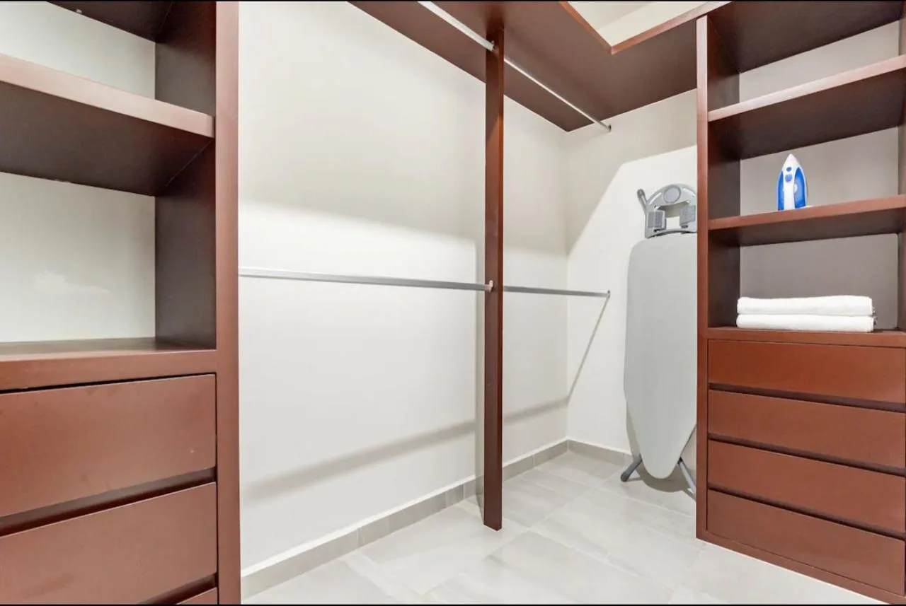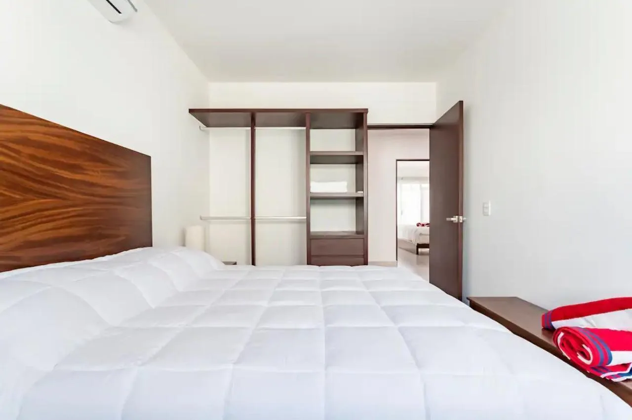 The three bedrooms each have minisplit air conditioning units, closets, and beds. The beds include king, queen, and single sizes.