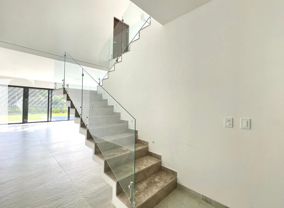 The property is equipped with a 5, 000-liter cistern with a constant pressure system. The kitchen includes a gas stove, gas oven, and range hood. There is a gas water heater and provisions for a washer and dryer. The bathrooms feature tempered glass cabinetry, and the home is equipped with inverter-type mini-split air conditioning units.