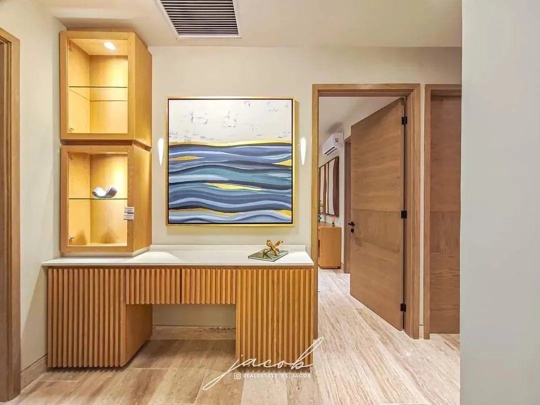 The building features a comprehensive suite of amenities. These include a sky bar, a fitness center, a coworking space, and a rooftop swimming pool. The motor lobby provides convenience, and there is a separate family pool. For recreation, there is a padel court, children's play areas, a pet park with barbecues, and a clubhouse. The building offers 24-hour security and a main lobby.